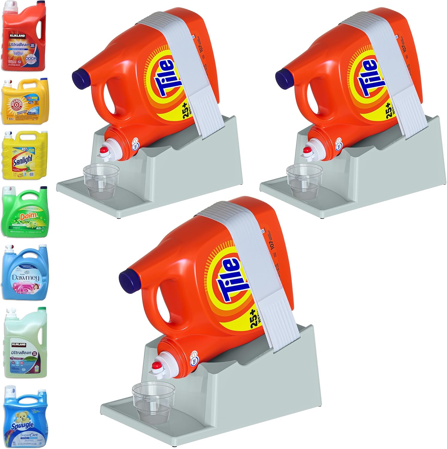 • [Versatile Fit:] The liquid laundry detergent holder station's optimal size (7.9"L x 12.2"W x 5.5"H) accommodates various bottle sizes, providing a perfect fit for most detergent containers without taking up too much space. (Laundry Soap, Cup, and Bottles NOT Included)