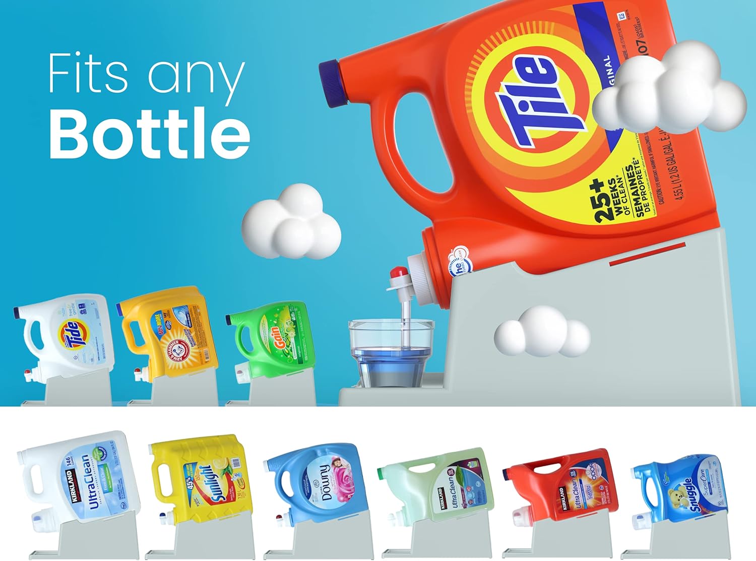 • [Safe Attachment:] The laundry detergent shelf or holder features a secure strap that firmly attaches and ensures your detergent bottle stays in place and minimizing the risk of accidental falls and spills.