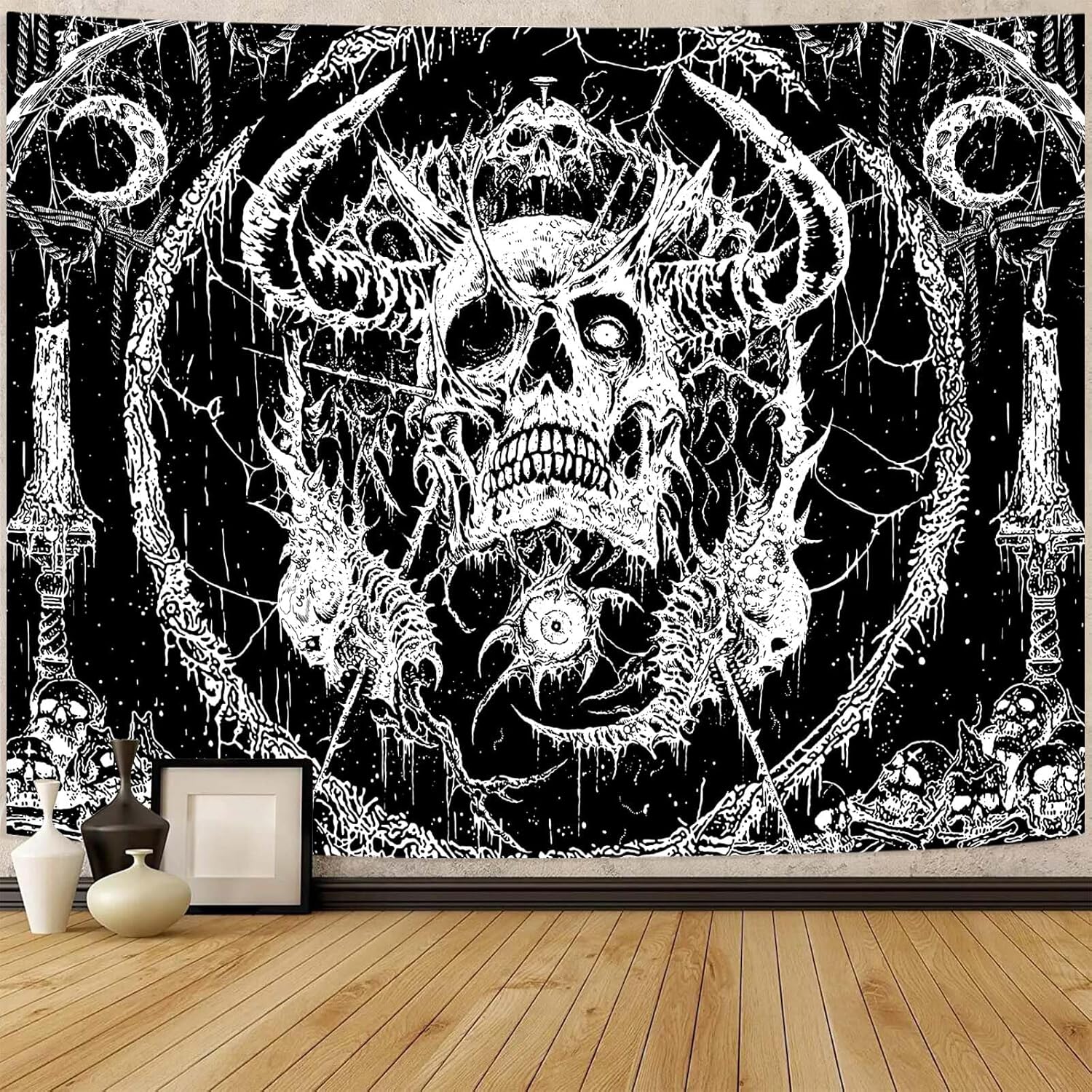 • 【Unique design】: The main body of this black and white tapestry is a terrifying skull, and the Gothic style makes your room even cooler.