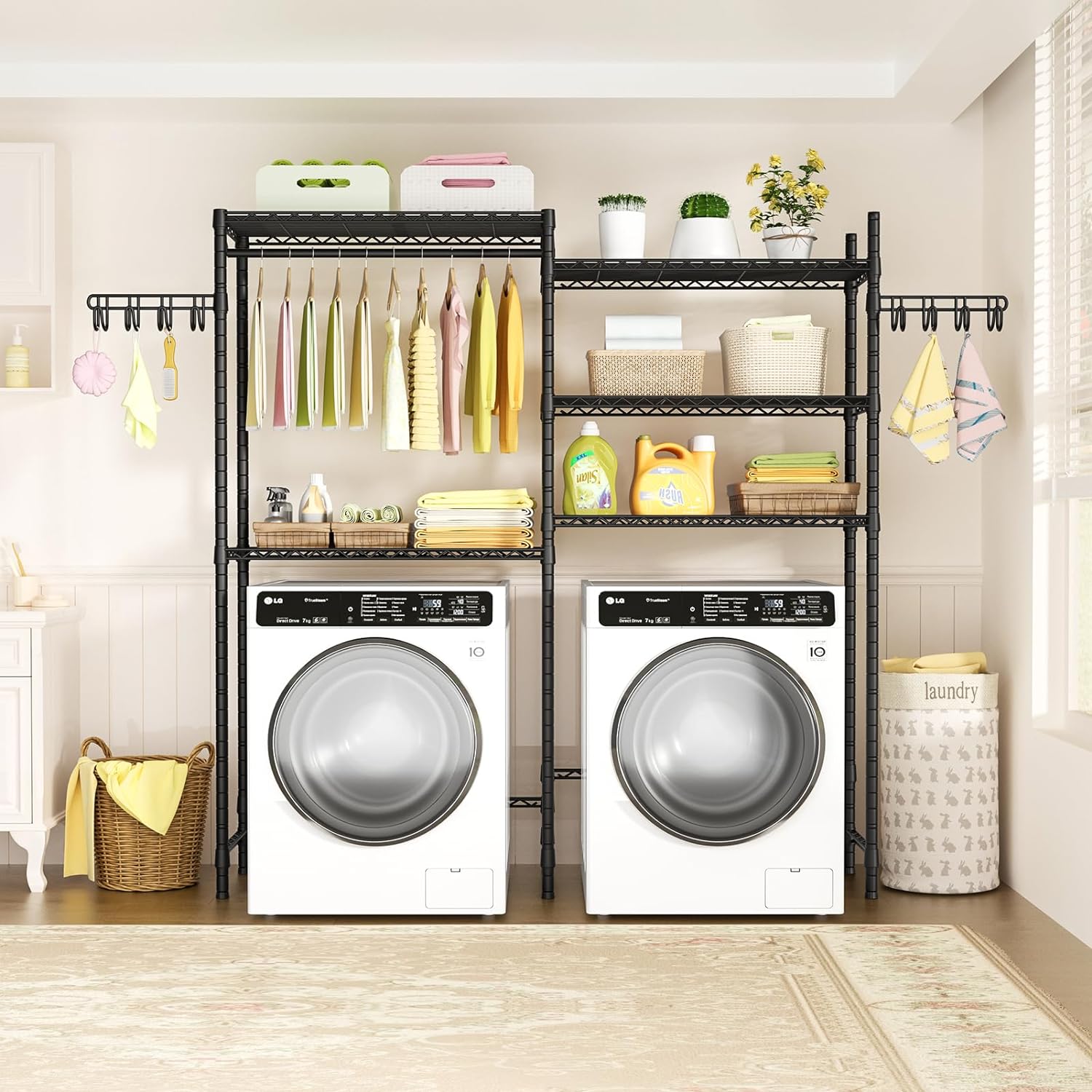 • [Customizable Assembly]: Adjust the shelves installation position to fit your washing machine type. You can custom to use the shelf quantity and the hanger rod installation position