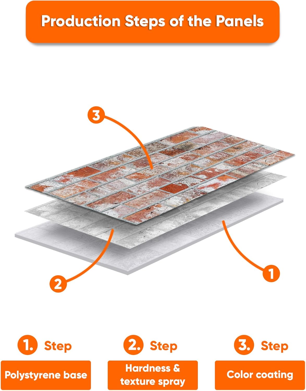 IZODEKOR 3D Wall Panels Brick Effect - Cladding, Stone Look, Styrofoam Facing for Living Room, Kitchen, Bathroom, Balcony, Bedroom, Back of Counter | Stone House (10 x Panels) - Covers 53 sq ft