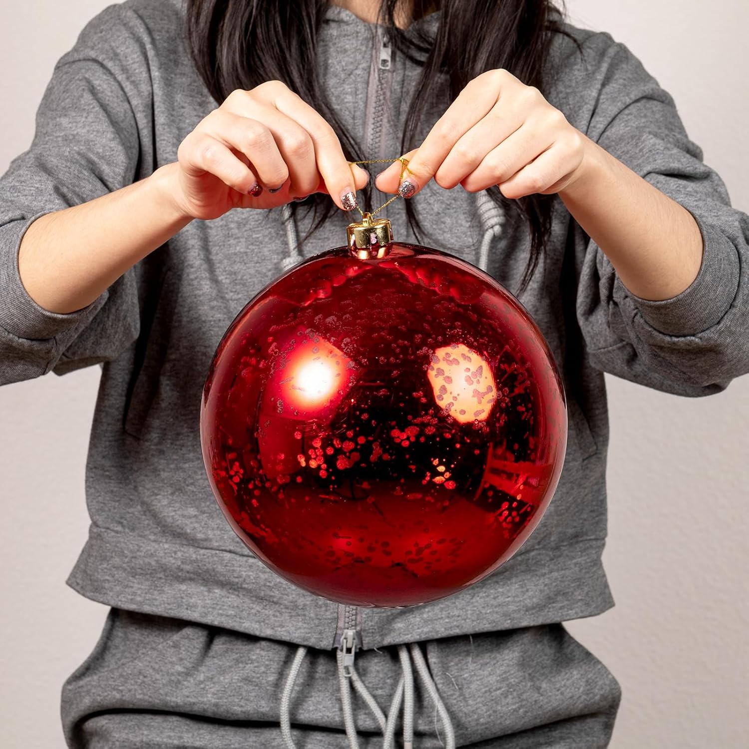 XmasExp Large Christmas Ball Ornaments,1pcs Red Giant Shatterproof Plastic Hanging Mercury Xmas Ball Decorations Christmas Tree Ornaments (Red, 8")