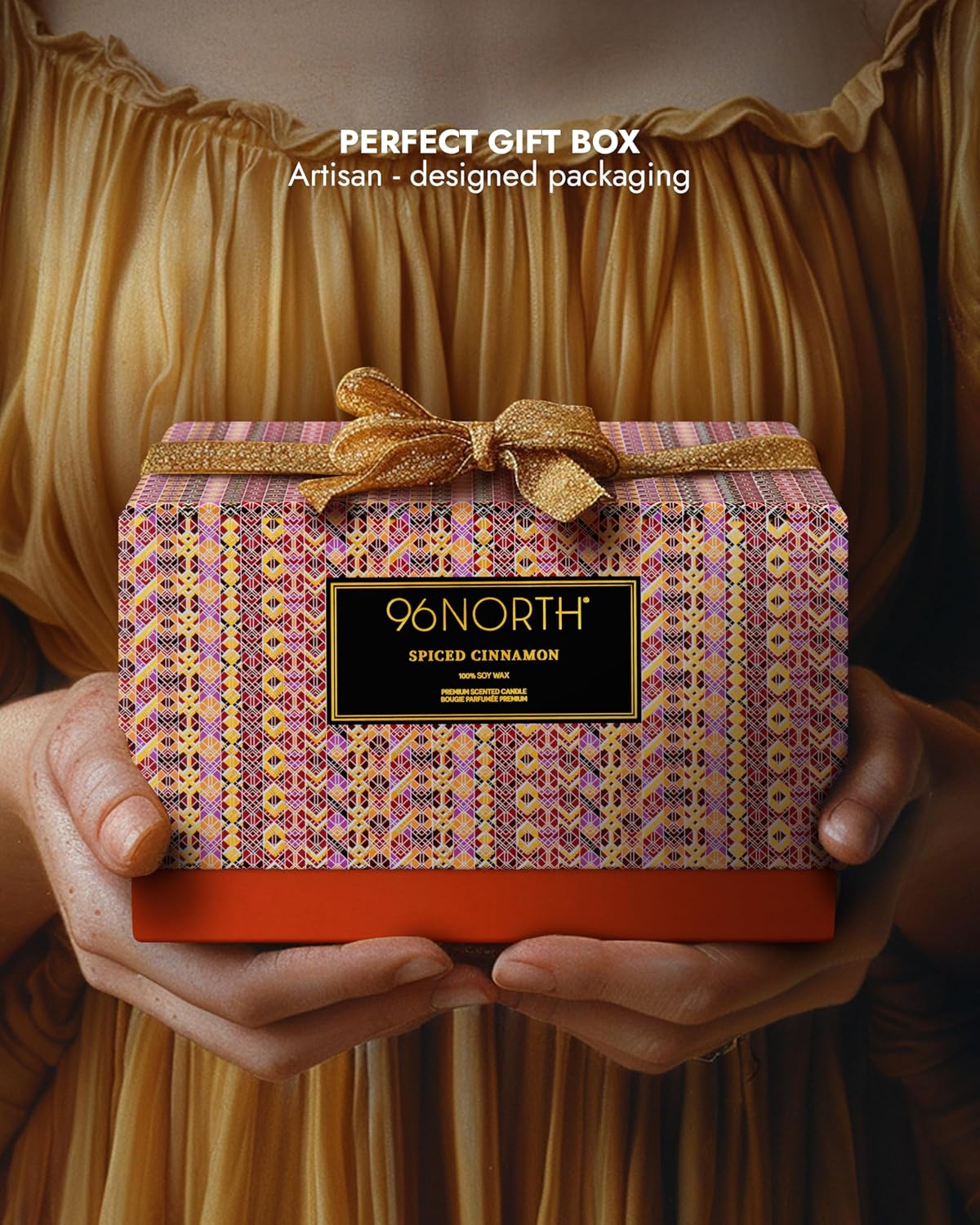 96NORTH Luxury Spiced Cinnamon Candle | Large 3 Wick Jar Candle | Up to 50 Hours Burning Time | 100% Natural Soy Wax | Relaxing Aromatherapy Aesthetic Candles | Housewarming Gift for Men and Women
