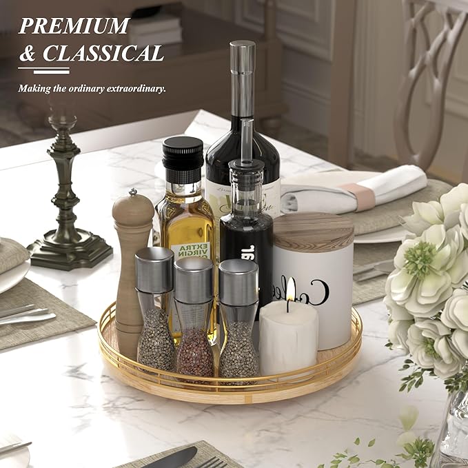 • π•π„π‘π’π€π“πˆπ‹π„ 𝐔𝐒𝐄:This lazy susan is enough to be used nearly anywhere, perfect in the kitchen, cabinets, dining room, office, etc. on your kitchen or dining table for organizing condiments, napkins, decor, candles. Easily reach all your medicine, spices, canned goods in your pantry. Next to your stove, hold all the essentials essences, bowls, greenery, and a butter dish. Good idea for the office desk and craft room to organize. Keep your coffee stuff perfect at your coffee station.