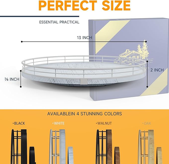 • 𝐔𝐏𝐃𝐀𝐓𝐄 πƒπ„π’πˆπ†π:The base is large enough to hold a lot and heavy objects and successfully rotate. It is made of lovely oak wood that is strong with a sturdy metal rack to secure the items on the turntable. The turntable smoothly revolves all around making the items an easy reach. There is also included anti-slip pads on the bottom of the Lazy Susan, for extra surface protection.