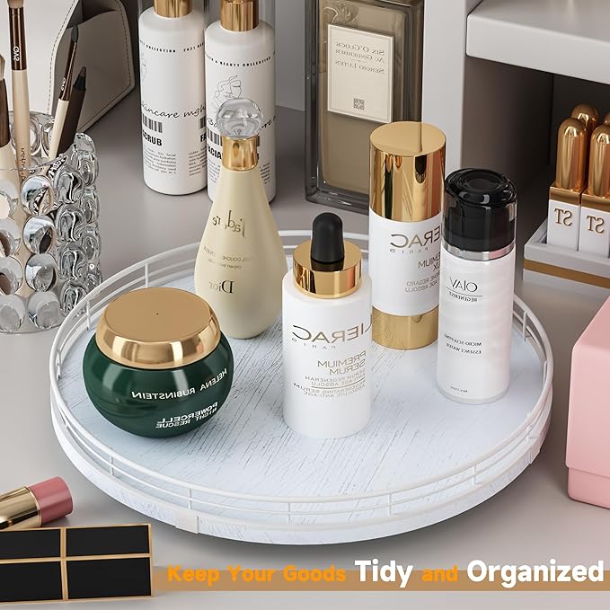 • π•π„π‘π’π€π“πˆπ‹π„ 𝐔𝐒𝐄:This lazy susan is enough to be used nearly anywhere, perfect in the bathroom, bedroom, laundry room, office, etc. Keep your bathroom counter organized with this bathroom tray for toiletries, lotion, washcloth, cotton swabs, soap and scrubber. Using a bathroom vanity tray to keep all your daily skin care and makeup. On the bedroom counter, ideal to organize perfumes. Good idea for the office desk and craft room to organize. Keep your coffee stuff perfect at your coffee