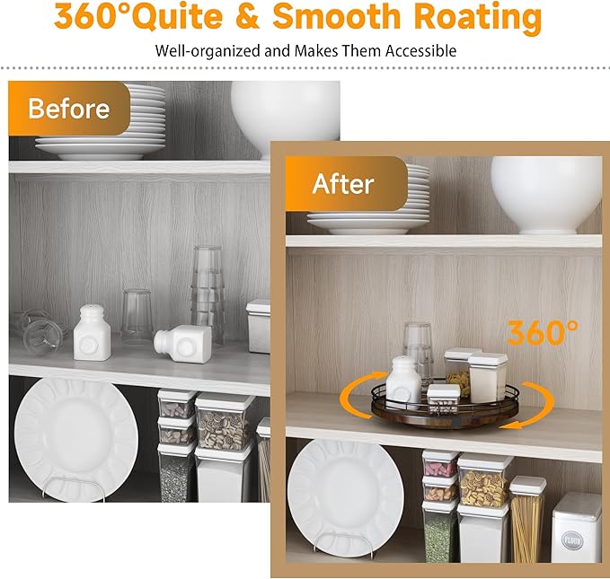 • πŸ‘πŸ”πŸŽΒ°π‘πŽπ“π€π“πˆππ† :The base is made of solid wood, and the spinning mechanism is made of steel ball bearings, which are well-built and allow for 360Β°smooth spinning. This Lazy Susan is very attractive and very easy to use to keep your spices, condiments, and more organized and accessible.