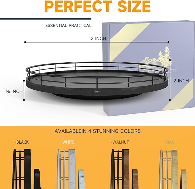 • 𝐔𝐏𝐃𝐀𝐓𝐄 πƒπ„π’πˆπ†π:The base is large enough to hold a lot and heavy objects and successfully rotate. It is made of lovely oak wood that is strong with a sturdy metal rack to secure the items on the turntable. The turntable smoothly revolves all around making the items an easy reach. There is also included anti-slip pads on the bottom of the Lazy Susan, for extra surface protection.