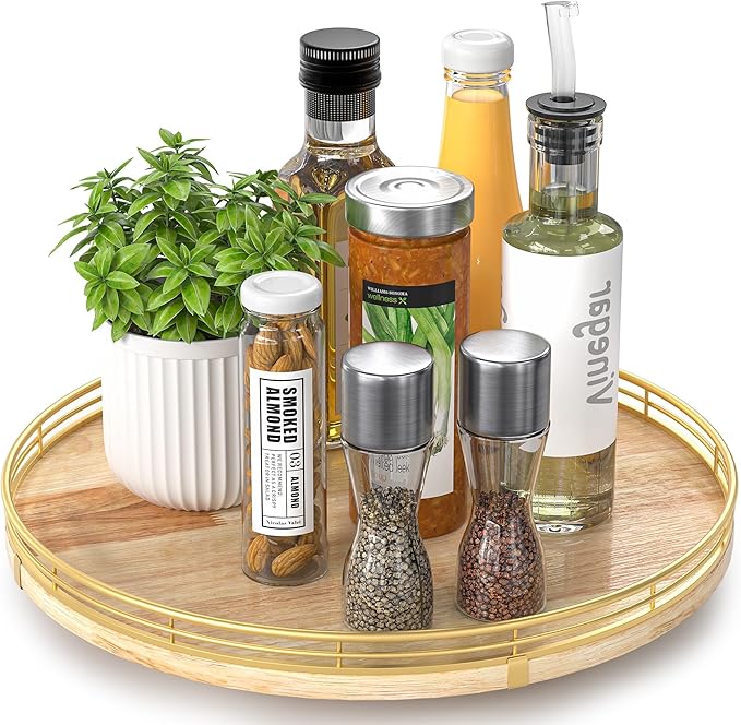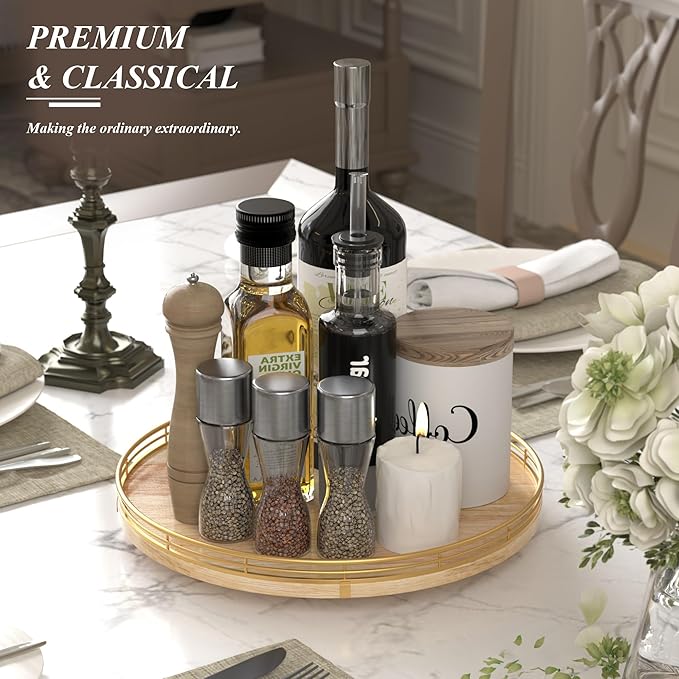 • π•π„π‘π’π€π“πˆπ‹π„ 𝐔𝐒𝐄:This lazy susan is enough to be used nearly anywhere, perfect in the kitchen, cabinets, dining room, office, etc. on your kitchen or dining table for organizing condiments, napkins, decor, candles. Easily reach all your medicine, spices, canned goods in your pantry. Next to your stove, hold all the essentials essences, bowls, greenery, and a butter dish. Good idea for the office desk and craft room to organize. Keep your coffee stuff perfect at your coffee station.