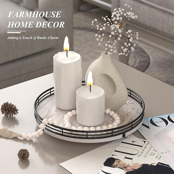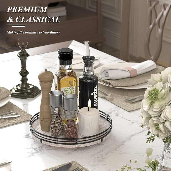 • ππ‘π„πŒπˆπ”πŒ πŒπ€π“π„π‘πˆπ€π‹: Our farmhouse lazy Susan made of natural ash wood veneer, sturdy, durable, and beautiful in texture. It is known for its durability, strength, and aesthetic, as well as it can handle heavy use and resist wear and tear. Widely used as coffee table decor, kitchen decor, centerpiece table decortations.