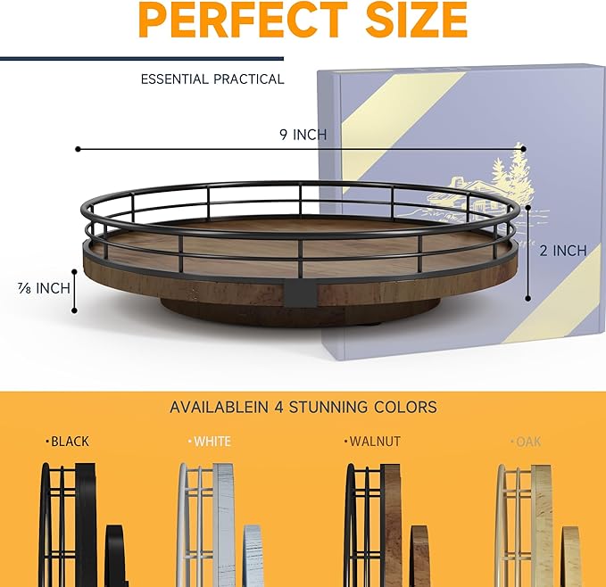• 𝐔𝐏𝐃𝐀𝐓𝐄 πƒπ„π’πˆπ†π:The base is large enough to hold a lot and heavy objects and successfully rotate. It is made of lovely oak wood that is strong with a sturdy metal rack to secure the items on the turntable. The turntable smoothly revolves all around making the items an easy reach. There is also included anti-slip pads on the bottom of the Lazy Susan, for extra surface protection.
