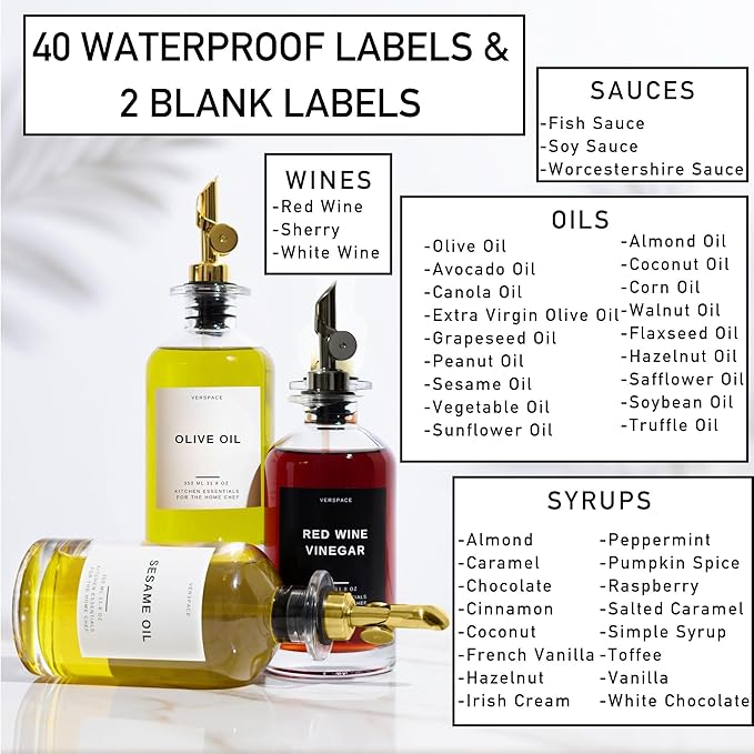 • Oil-Resistant Labels Included: Every set includes 40 waterproof labels that stay stain-free. These labels are reusable multiple times and peel off cleanly without leaving any residue.