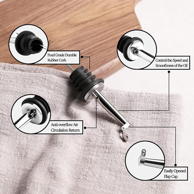 • Easy to Clean - The tip port is easy to remove, making the oil separator easier to clean. After adding the oil in the bottle, you need to clean or wipe the bottle mouth and nozzle to make sure the nozzle fits the bottle.