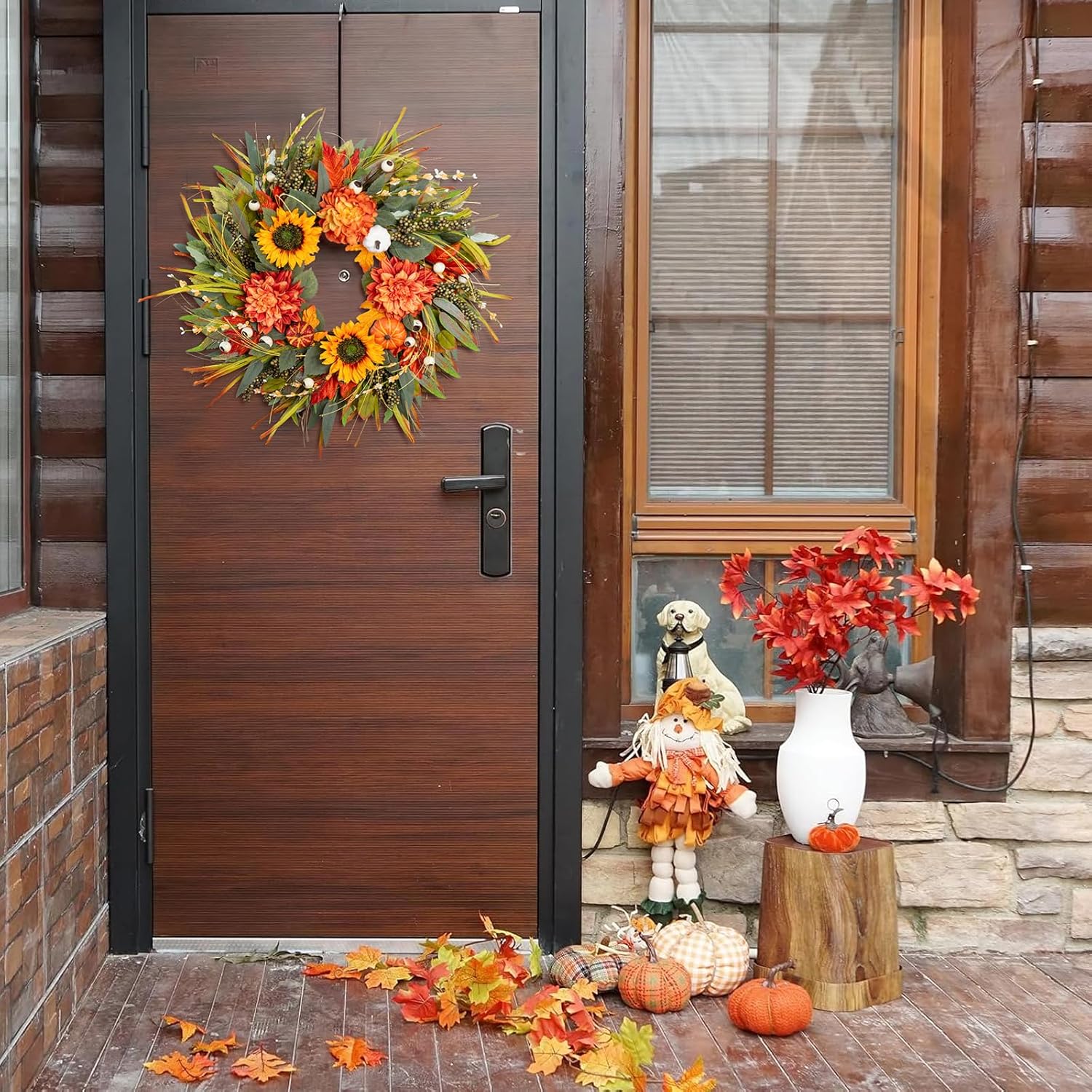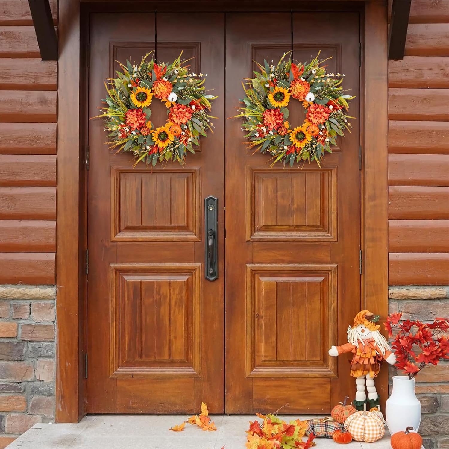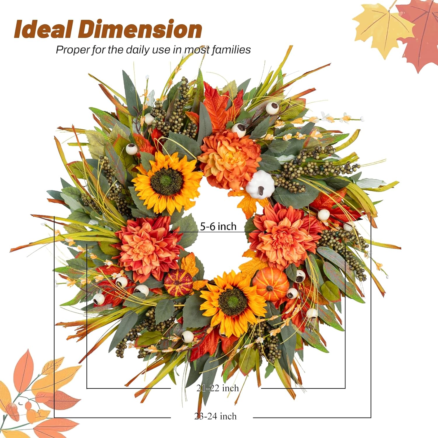 • Perfectly Sized for a Welcoming Impression – 24 Inches of Seasonal Beauty Designed at the ideal size, our fall wreaths for front door 24 inch give your guests an immediate sense of welcome. Whether your door is wood, glass, or painted, this full and textured wreath stands out in just the right way — elegant, bold, and balanced.