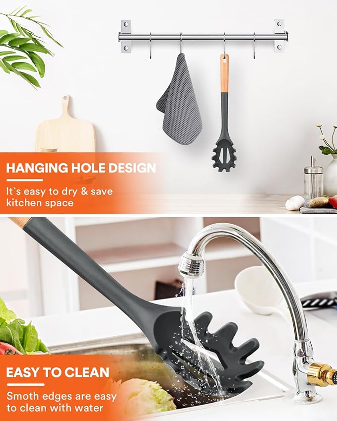 • Just Want To Provide The Best For You : The soft food-grade silicone head is designed for noise-free cooking. Unique sawtooth design, easy to pick up noodles. Whether it is used for stirring or serving spaghetti. Our silicone pasta fork will add more fun to your kitchen
