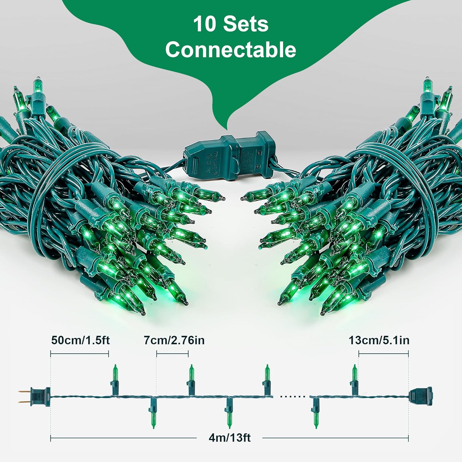 • 🌲Connectable Christmas Lights: Green mini string lights can be End-to-End connected. Up to 10 sets,lighting range can be extended to 130ft. With this convenient function,you can do the DIY decoration on any occasions: shopping street, Christmas, Halloween, St. Patrick's Day,music festival, birthday party, graduation party, garden, deck, bedroom.