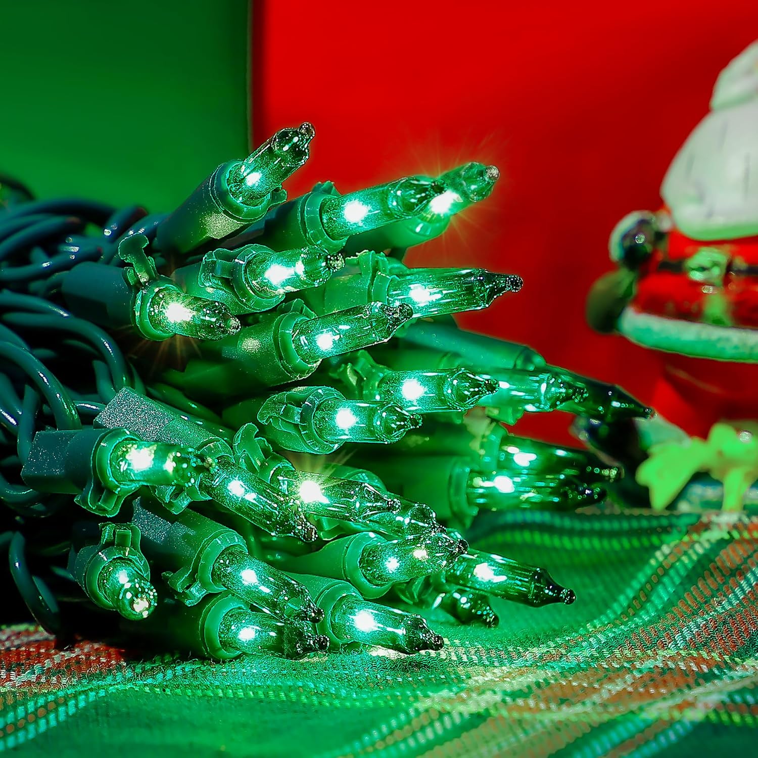 50-Count Green Christmas Tree Lights with Green Wire,13ft Incandescent Bulb Waterproof Fairy Lights,Plug in Mini String Lights for Holiday Decorations, Party, Xmas, Yard, Indoor & Outdoor