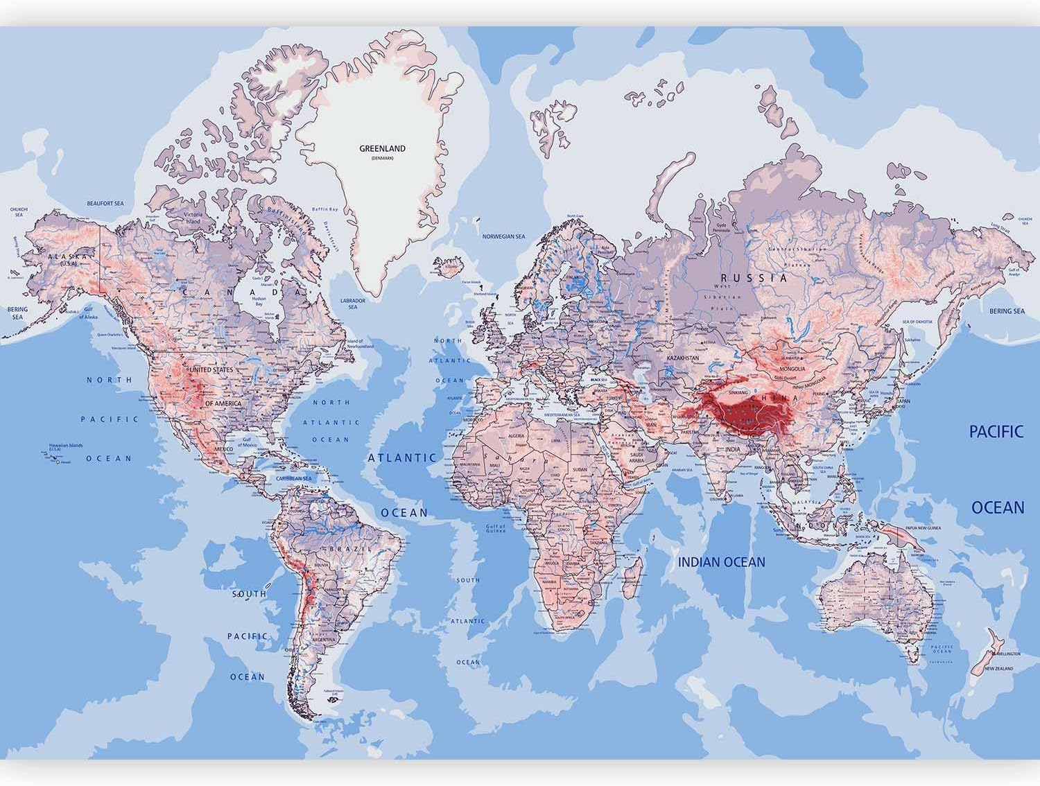 artgeist Premium Wall Mural World Map 79x55 in - XXL Non-Woven Wallpaper Fleece Wall Decor Photo Print Picture Image Design Home Map of The World k-A-0061-a-b