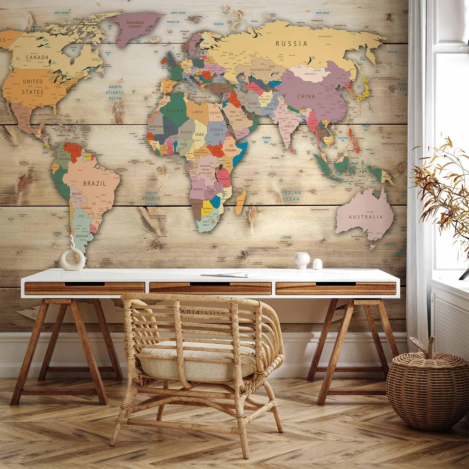 artgeist Premium Wall Mural World Map 79x55 in - XXL Non-Woven Wallpaper Fleece Wall Decor Photo Print Picture Image Design Home Map of The World k-B-0009-a-b