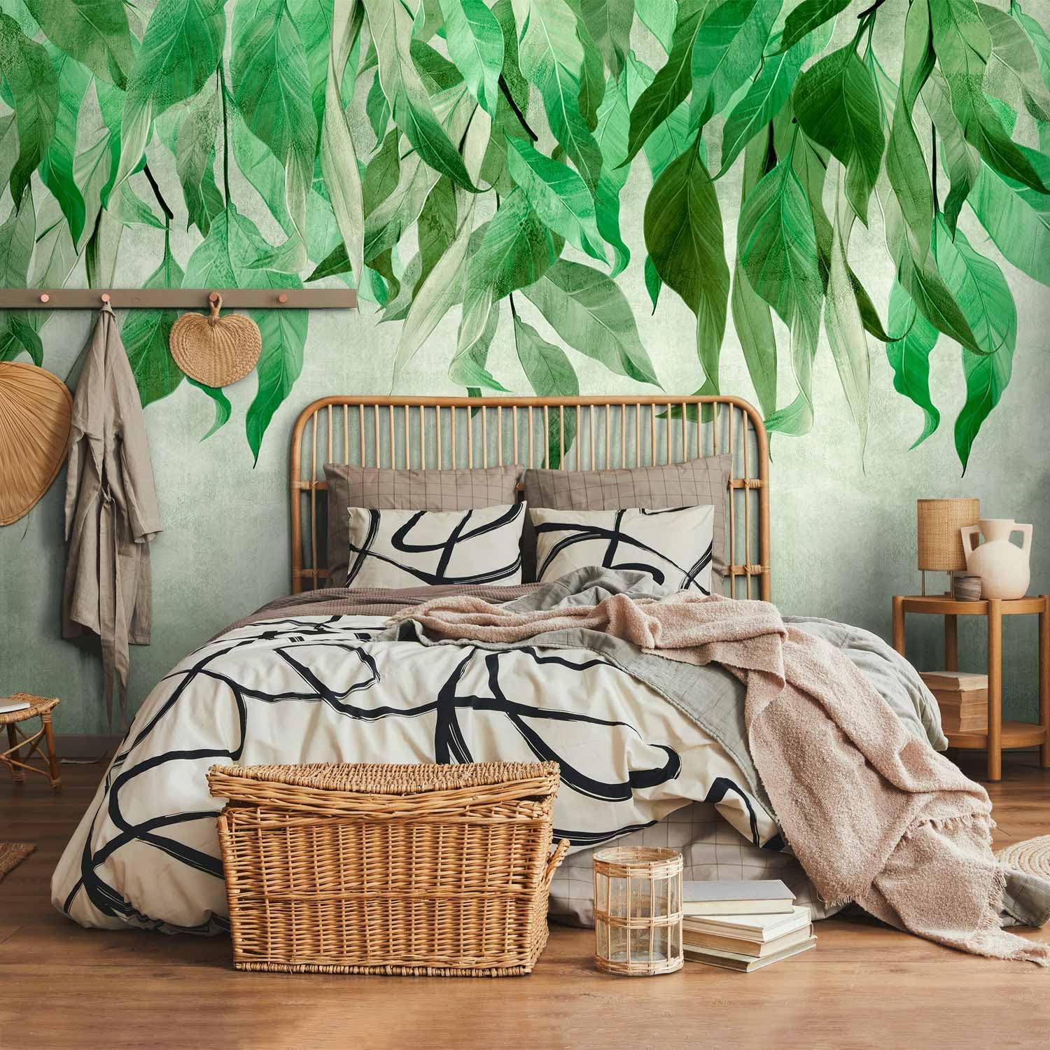 artgeist Premium Wall Mural Hanging Leaves 157x110 in - Non-Woven Wallpaper Fleece Wall Decor Photo Print Picture Image Design Nature Botanical Concrete Green Like Painted b-C-10146-a-a