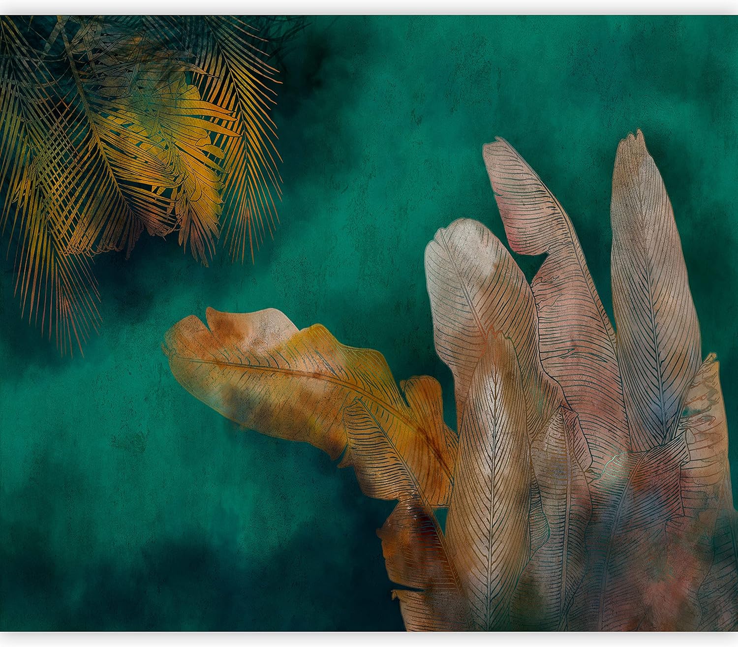 artgeist Premium Wall Mural Jungle 177x124 in - XXL Non-Woven Wallpaper Fleece Wall Decor Photo Print Picture Image Design Leaves Green Yellow Nature b-A-0825-a-a