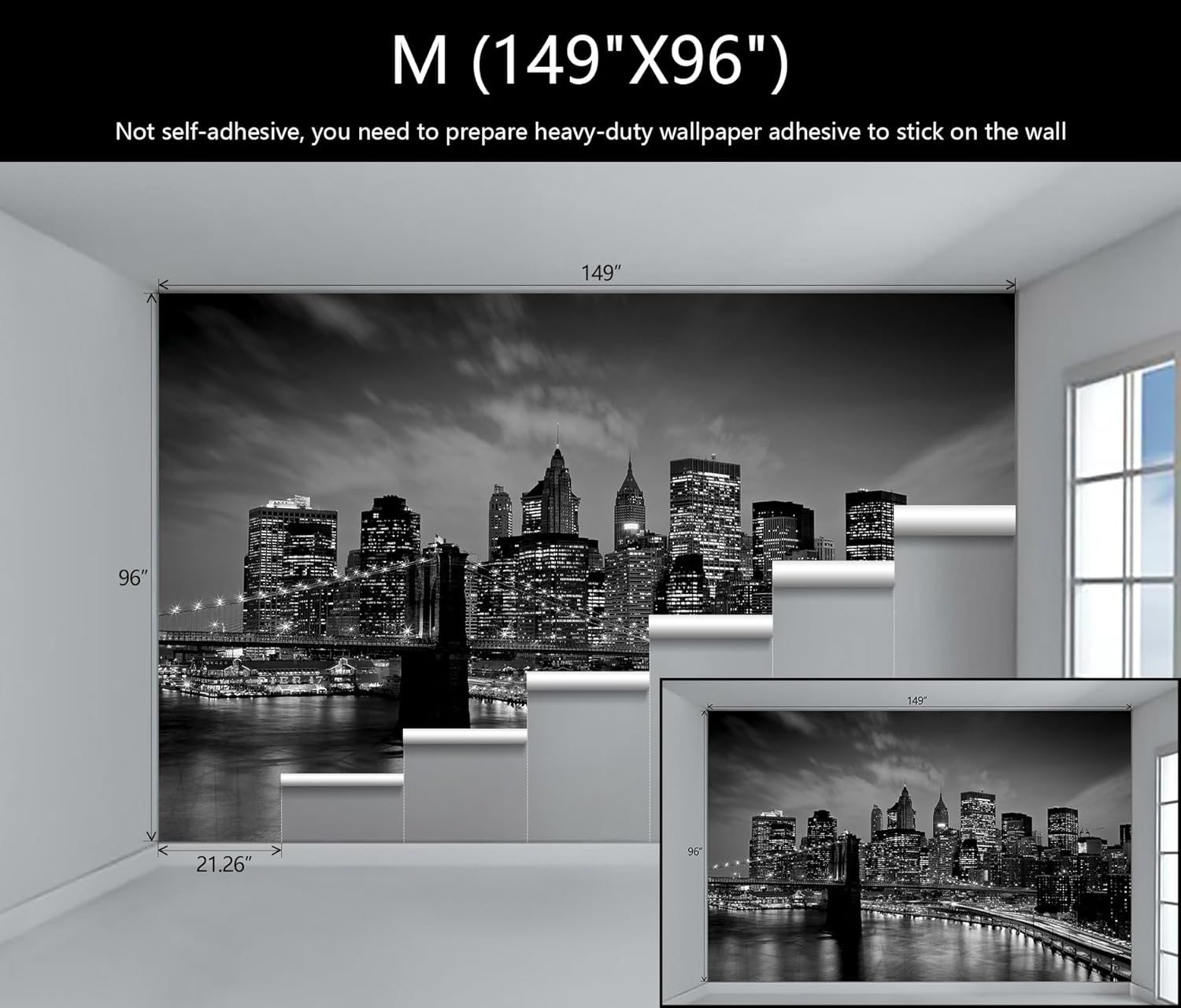 WFBHUA-Brooklyn Bridge Wall Mural Black New York City Landscape Photo Wallpaper for Living Room Bedroom(Not Peel and Stick)