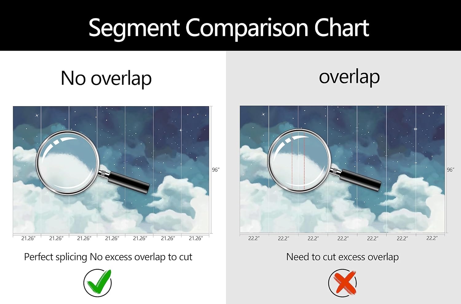 • Mural Size: The total size of this mural wallpaper is 149" x 96" / 378CM x 244CM (W x H), cut into 7 pieces, each measuring 21.26" x 96", for easy installation.