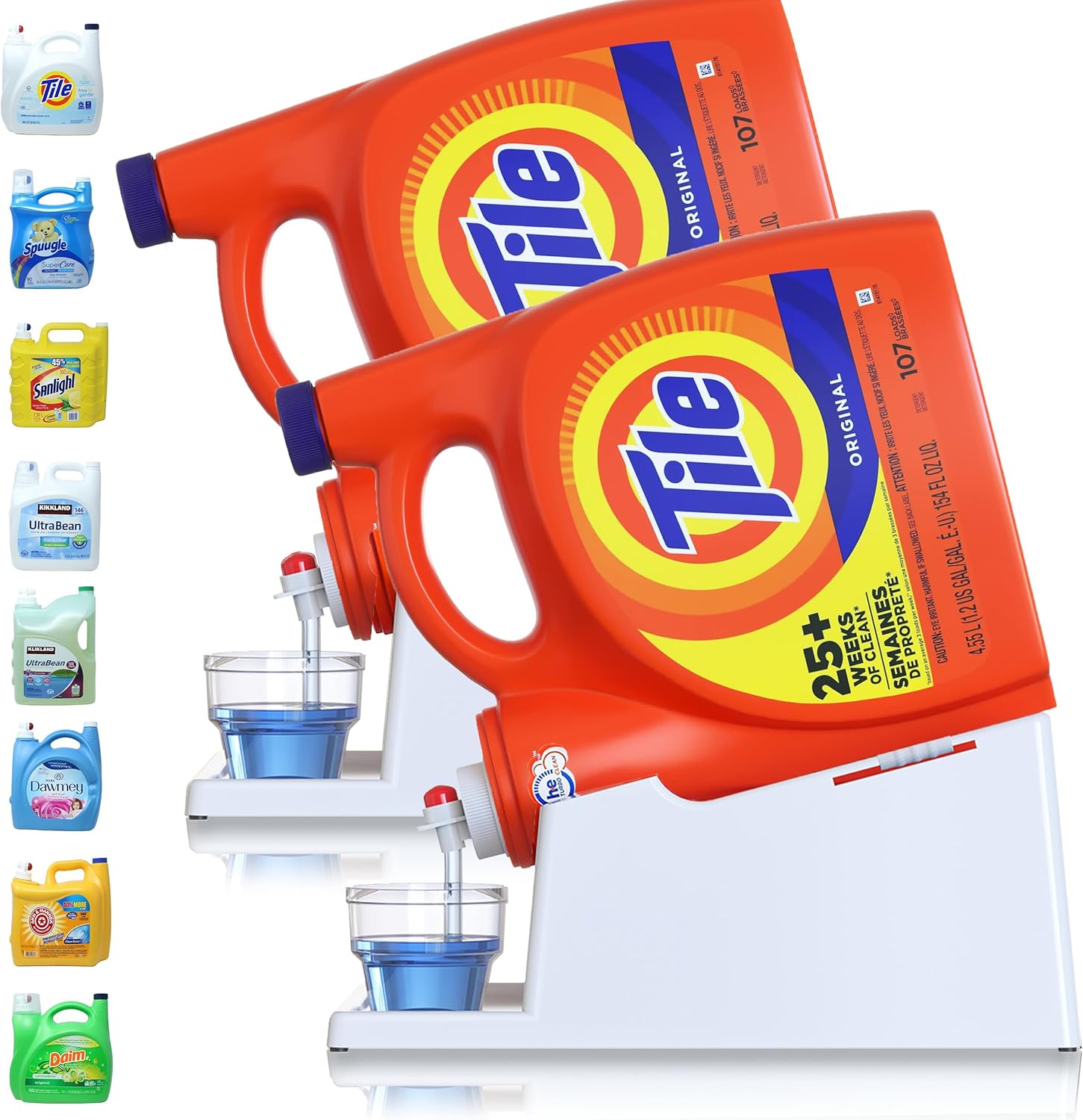 • [OUTSTANDING DESIGN] - This Laundry Detergent Holder has an "Angled" Feature. No need to tilt or lift the bottle. This Laundry Detergent Stand can help you to be more energy-saving at a cheap cost by using this item for both your detergent and fabric conditioner bottles as part of your daily Laundry Supplies