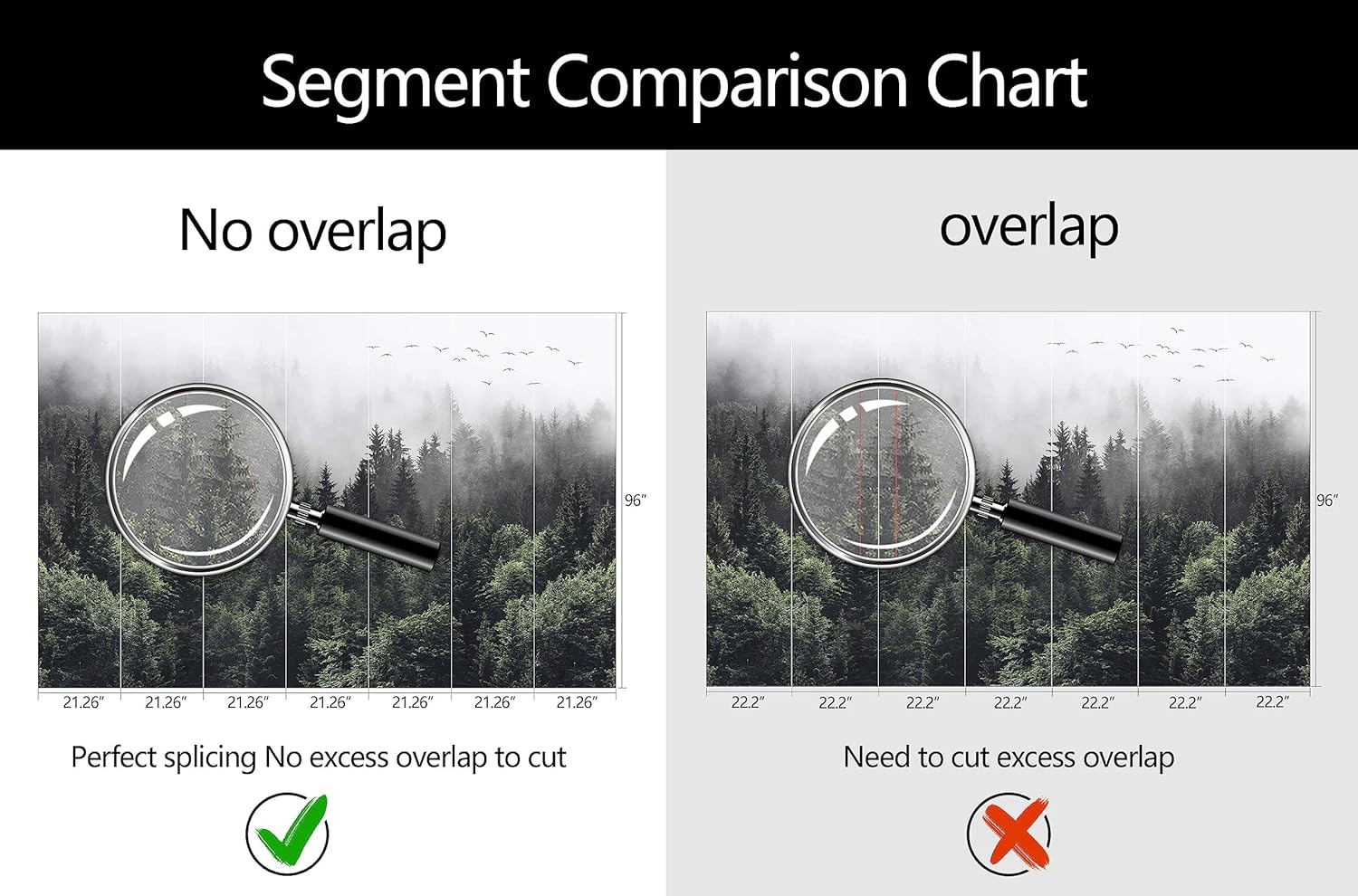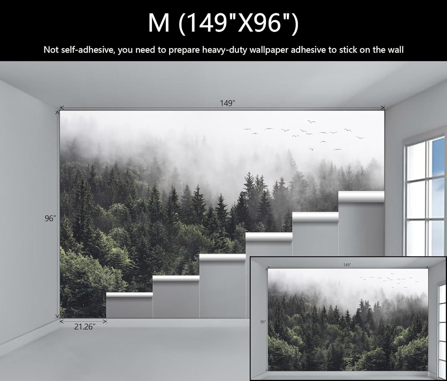 • Mural Size: The total size of this mural wallpaper is 149" x 96" / 378CM x 244CM (W x H), cut into 7 pieces, each measuring 21.26" x 96", for easy installation.