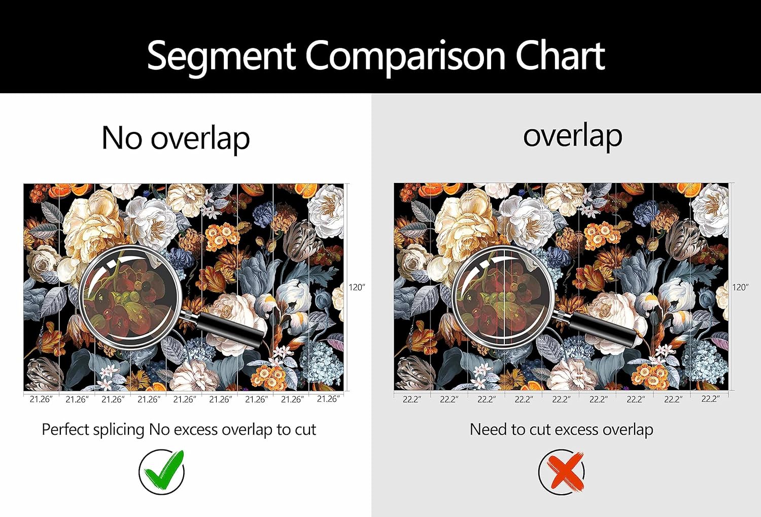 • Mural Size: The total size of this mural wallpaper is 191" x 120" / 486CM x 305CM (W x H), cut into 9 pieces, each measuring 21.26" x 120", for easy installation.