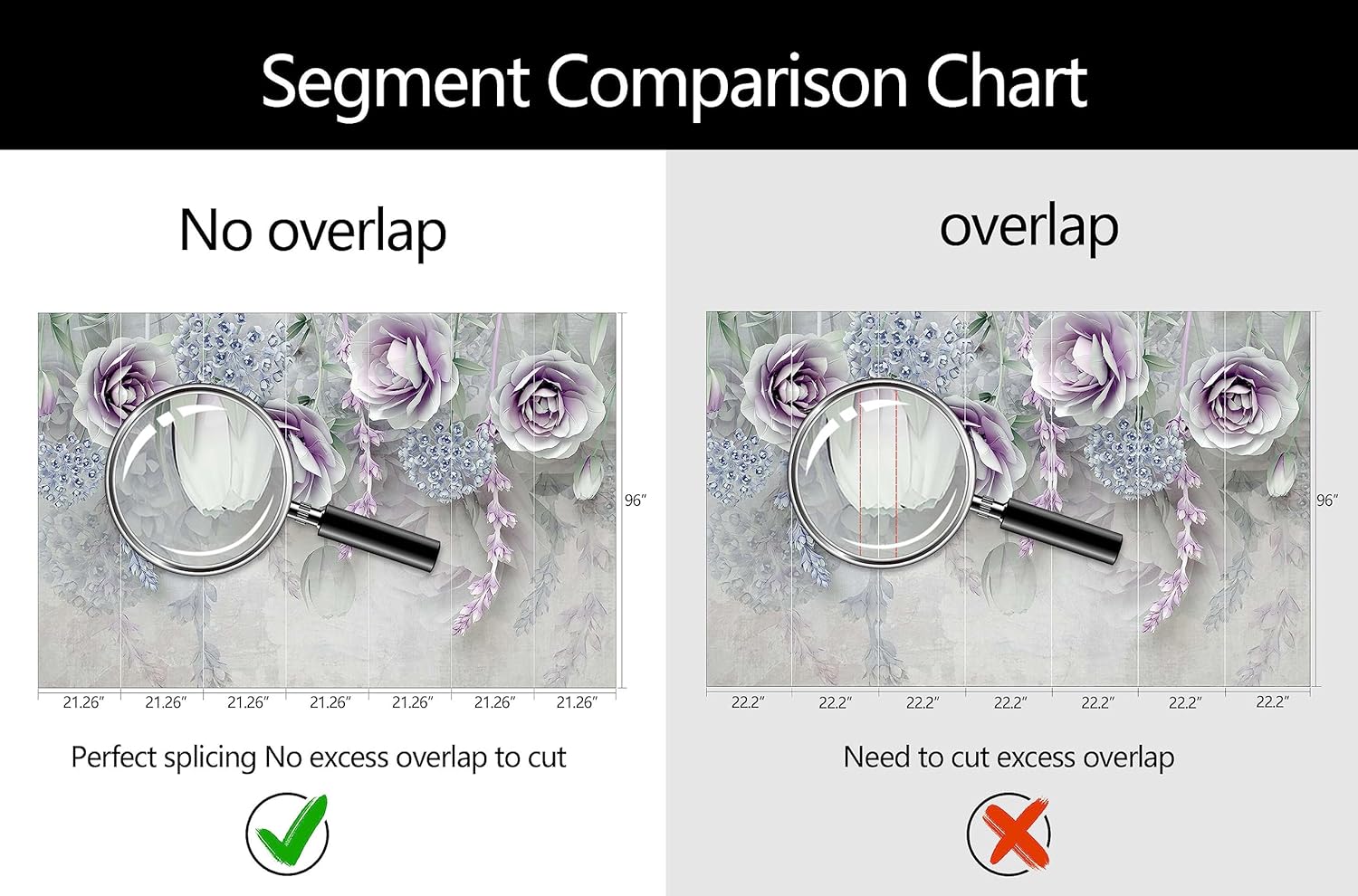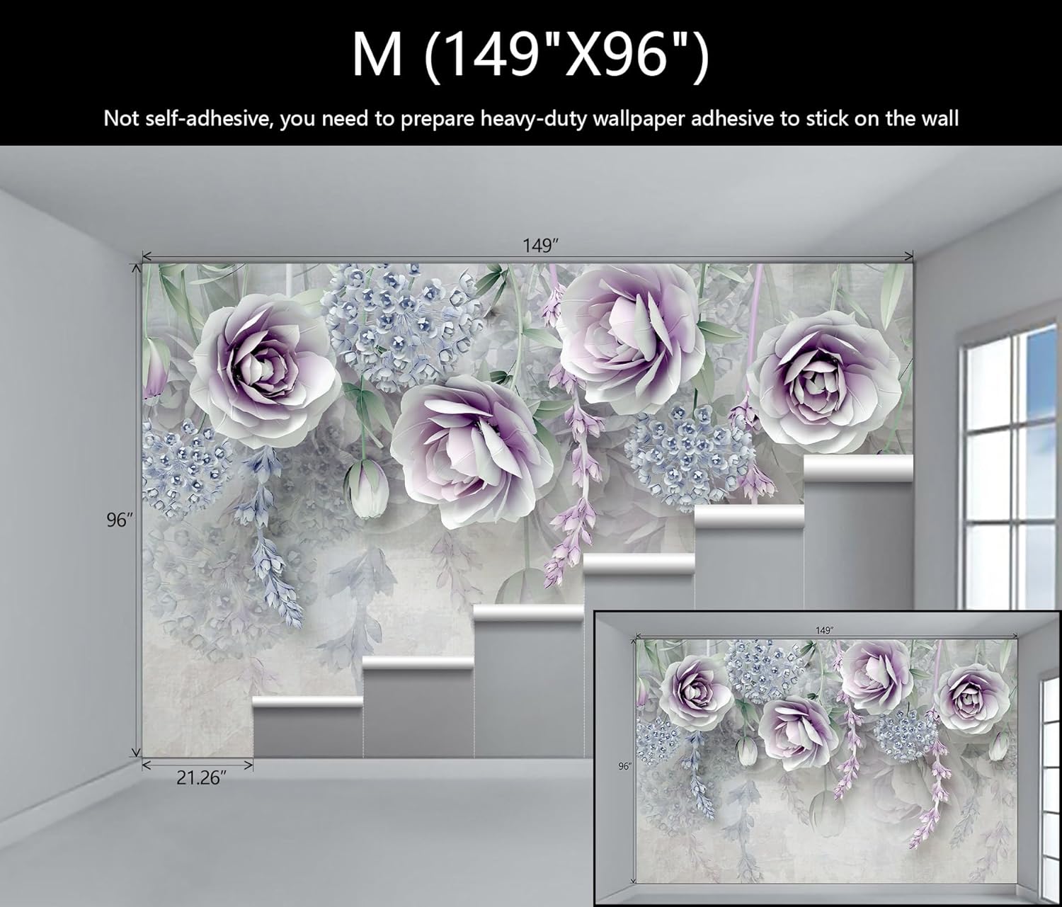 • Mural Size: The total size of this mural wallpaper is 149" x 96" / 378CM x 244CM (W x H), cut into 7 pieces, each measuring 21.26" x 96", for easy installation.