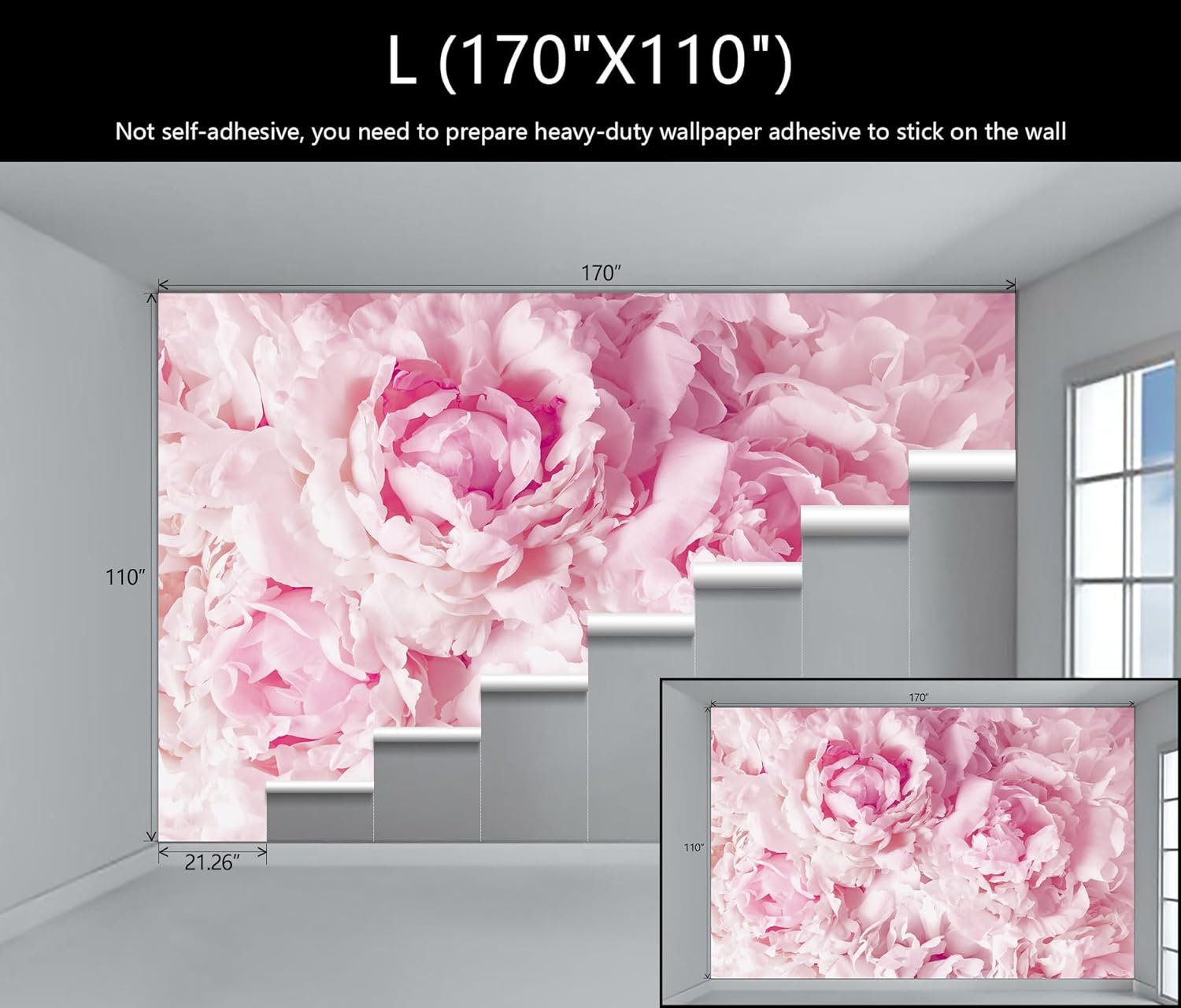 WFBHUA-Pink Floral Wallpaper Mural Peony Flower Wallpaper for Girls Bedroom Wall Murals(Not Peel and Stick)