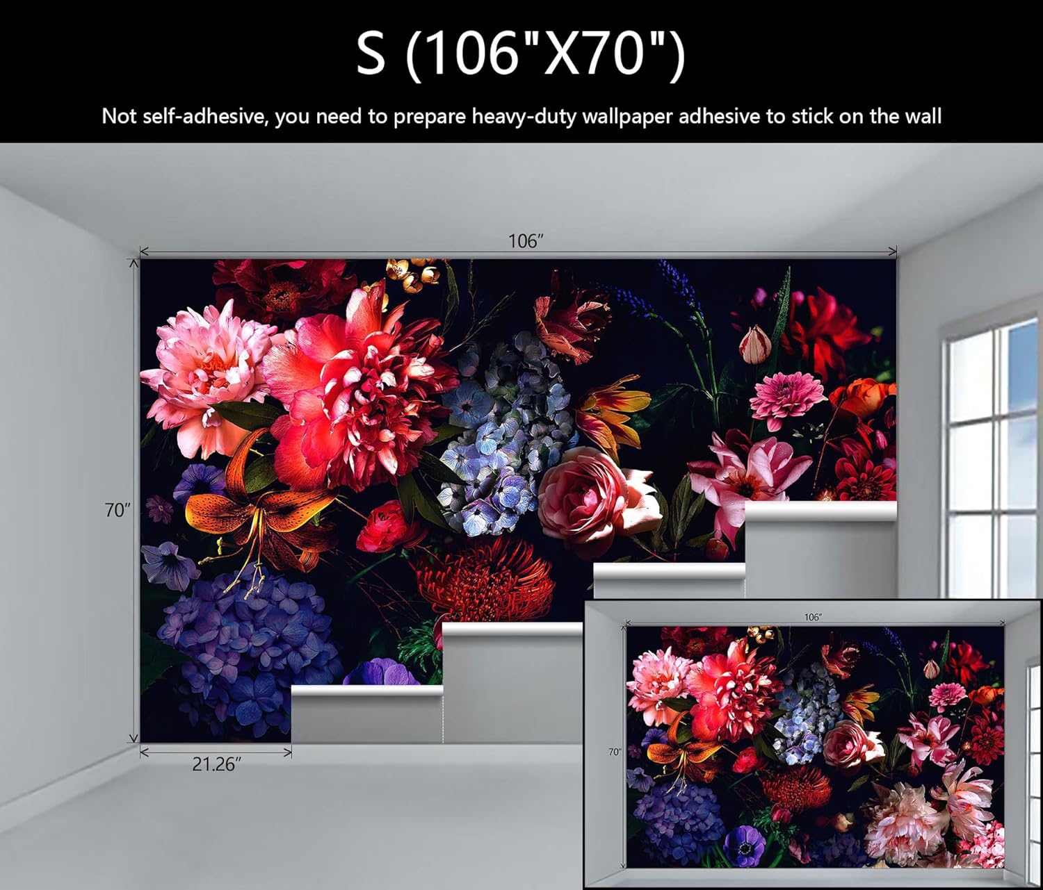 WFBHUA-Dark Floral Wallpaper Watercolor Pink and Blue Flower Wall Mural for Bedroom (Not Peel and Stick)