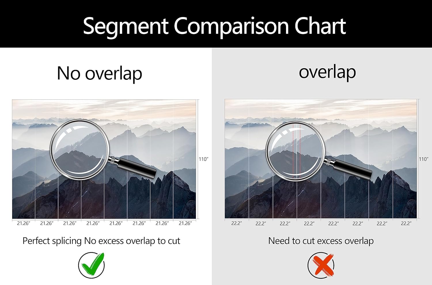 • Mural Size: The total size of this mural wallpaper is 170" x 110" / 432CM x 280CM (W x H), cut into 8 pieces, each measuring 21.26" x 110", for easy installation.
