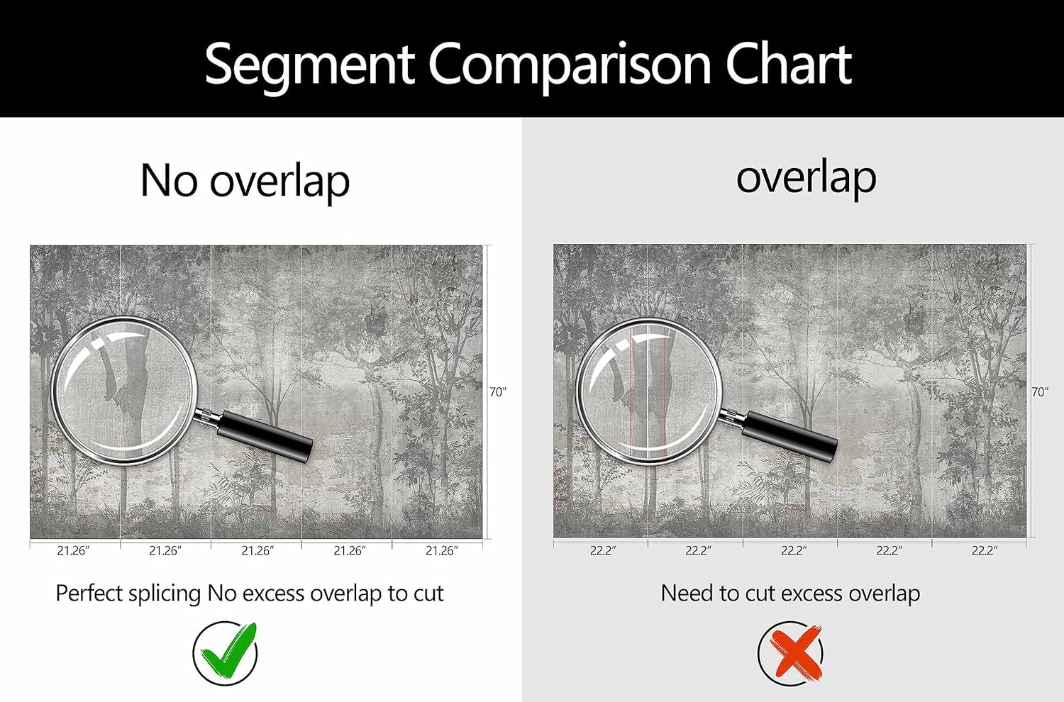 • Mural Size: The total size of this mural wallpaper is 106" x 70" / 270CM x 178CM (W x H), cut into 5 pieces, each measuring 21.26" x 70", for easy installation.