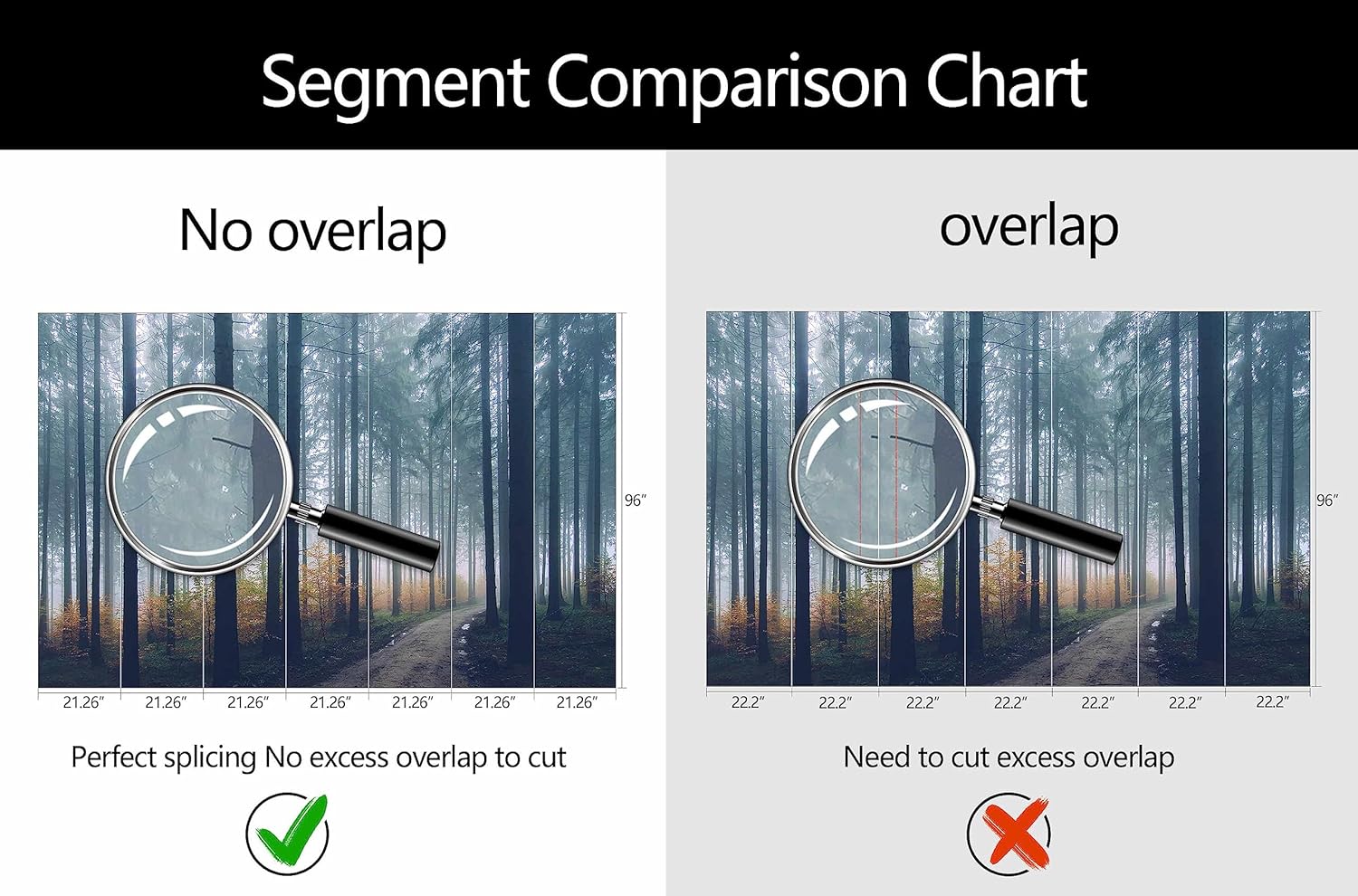 • Mural Size: The total size of this mural wallpaper is 149" x 96" / 378CM x 244CM (W x H), cut into 7 pieces, each measuring 21.26" x 96", for easy installation.