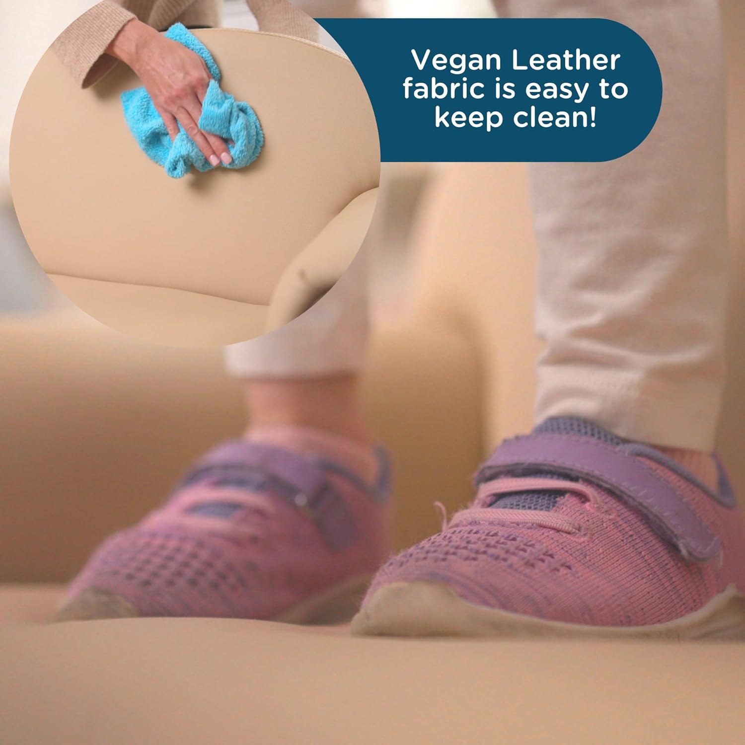 • EASY TO CLEAN: Thanks to the environmentally friendly vegan leather, this toddler couch is super easy to simply wipe clean when dirty