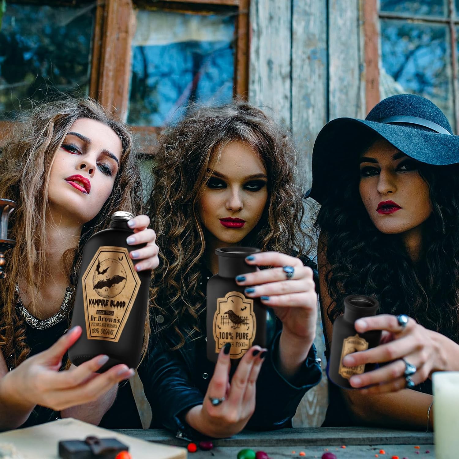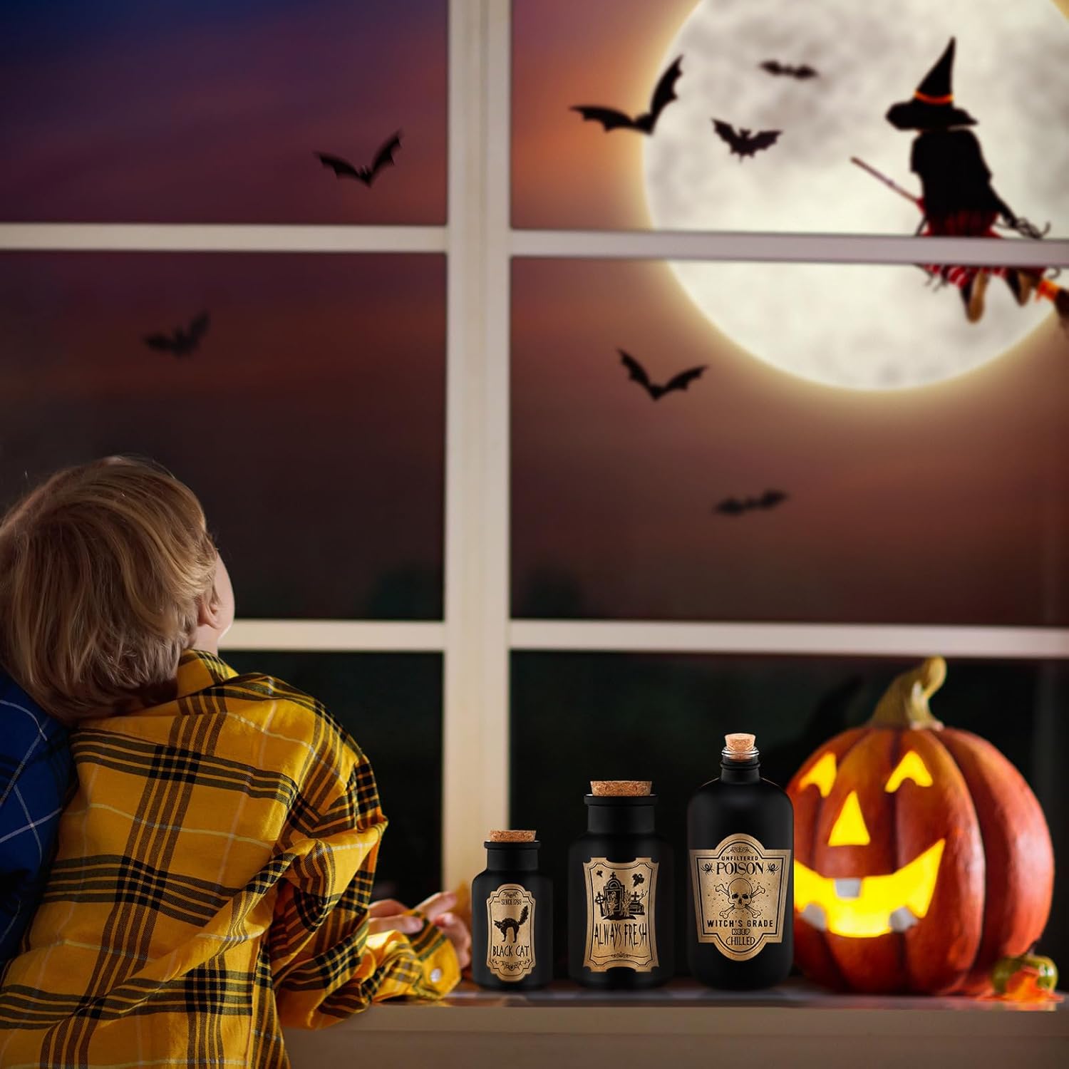 • Vintage Halloween Decorations Set: you will receive 3 pcs black Halloween glass potion bottles in different size, and 12 pcs spooky apothecary jars label; Add the stickers, and you will have awesome small potion jar decorations