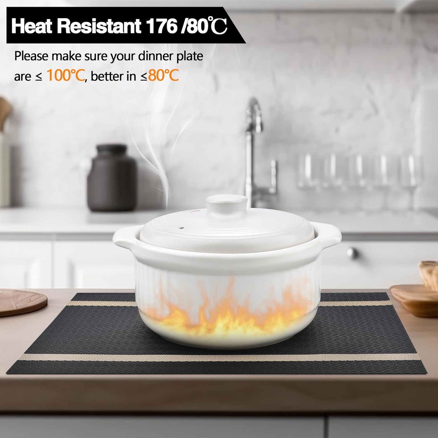• Heat Resistant: Please make sure your dinner plate are ≤ 100℃, better in ≤80℃. It can prevent the table from slipping and scalding the countertop. These beautiful stylish vinyl place mats to add more fun to your dining table