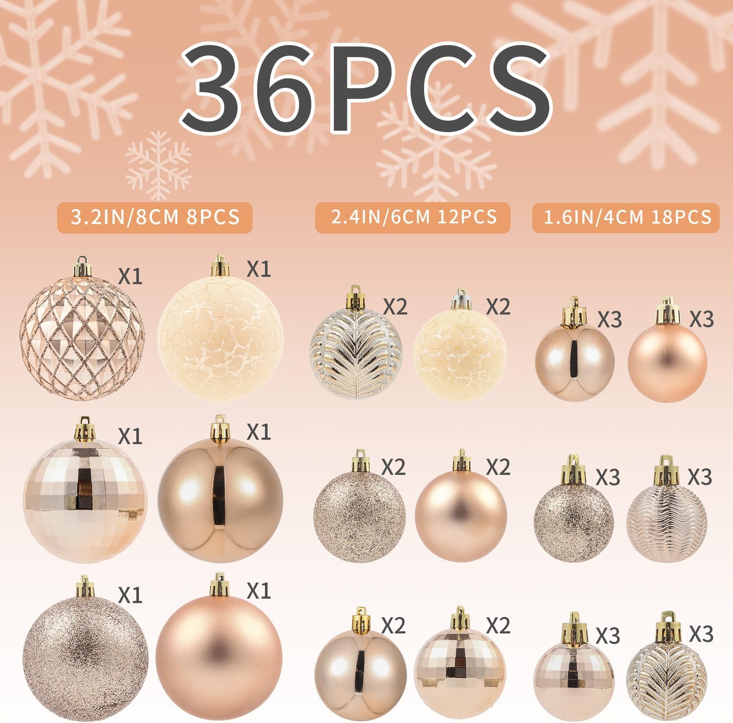 LANGXUN 36pcs Champagne Gold Christmas Tree Decorations Balls, Bolas De Navidad, 2025 Christmas Decor, Indoor Outdoor Shatterproof Christmas Ornaments, Xmars Party Wedding Suppiles