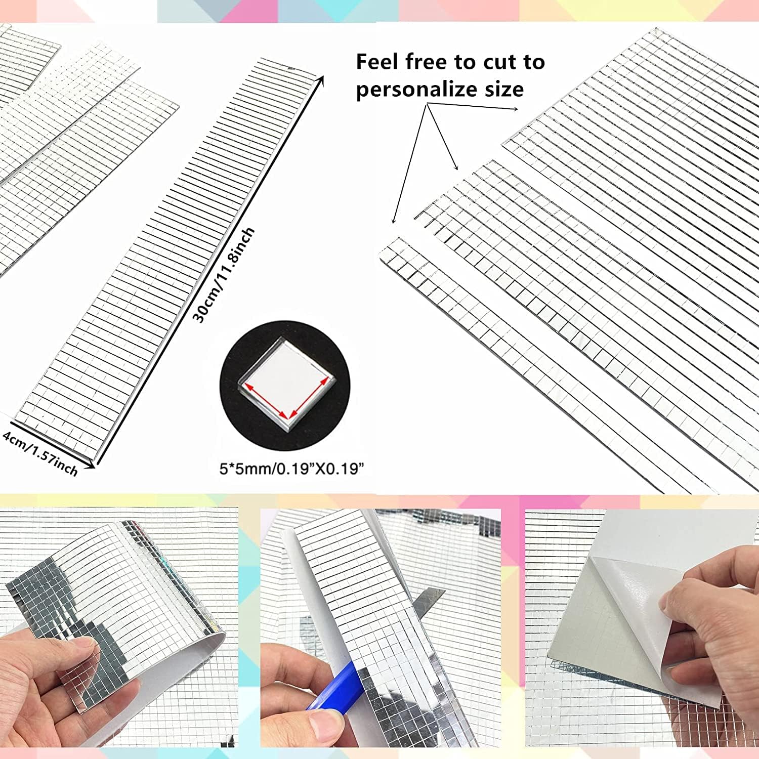 • Quantity : A set comes with 1 sheet of self-adhesive mirror mosaics,size of each sheet is 80 mm x 30 mm.2400 small pieces in total.Or with 2 sheets of 10 mm x 30 mm.