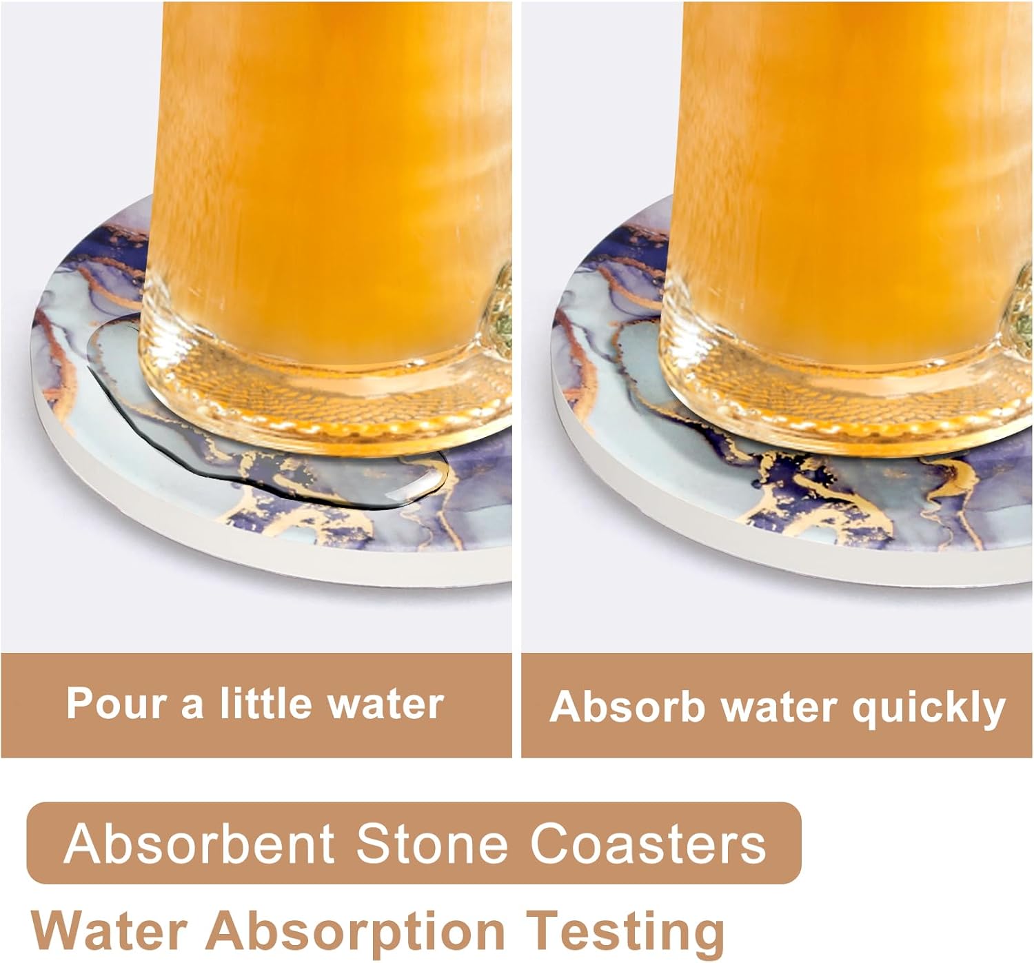 • ABSORBENT CERAMIC COASTERS: The absorbent ceramic material on the top layer of the coaster keeps your table dry and protects it from water stains.