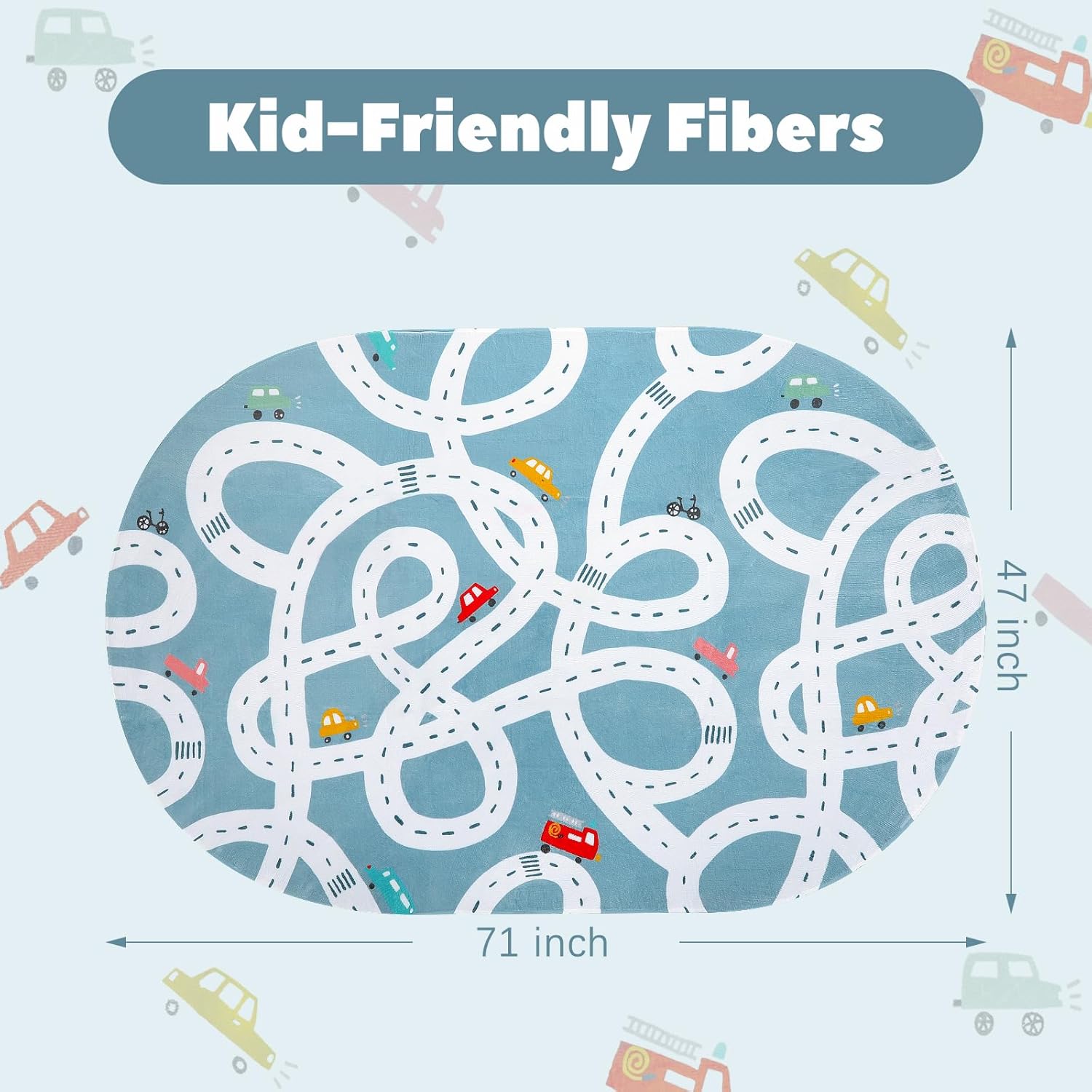 STARUIA Large Kids Playroom Rug, 4'x6' Washable Road Rug for Nursery, Non-Slip Fun Area Rugs for Kids Room, Blue Car Rugs Play Mat Soft Baby Carpet for Boys Girls Dorm Toy Room Tent