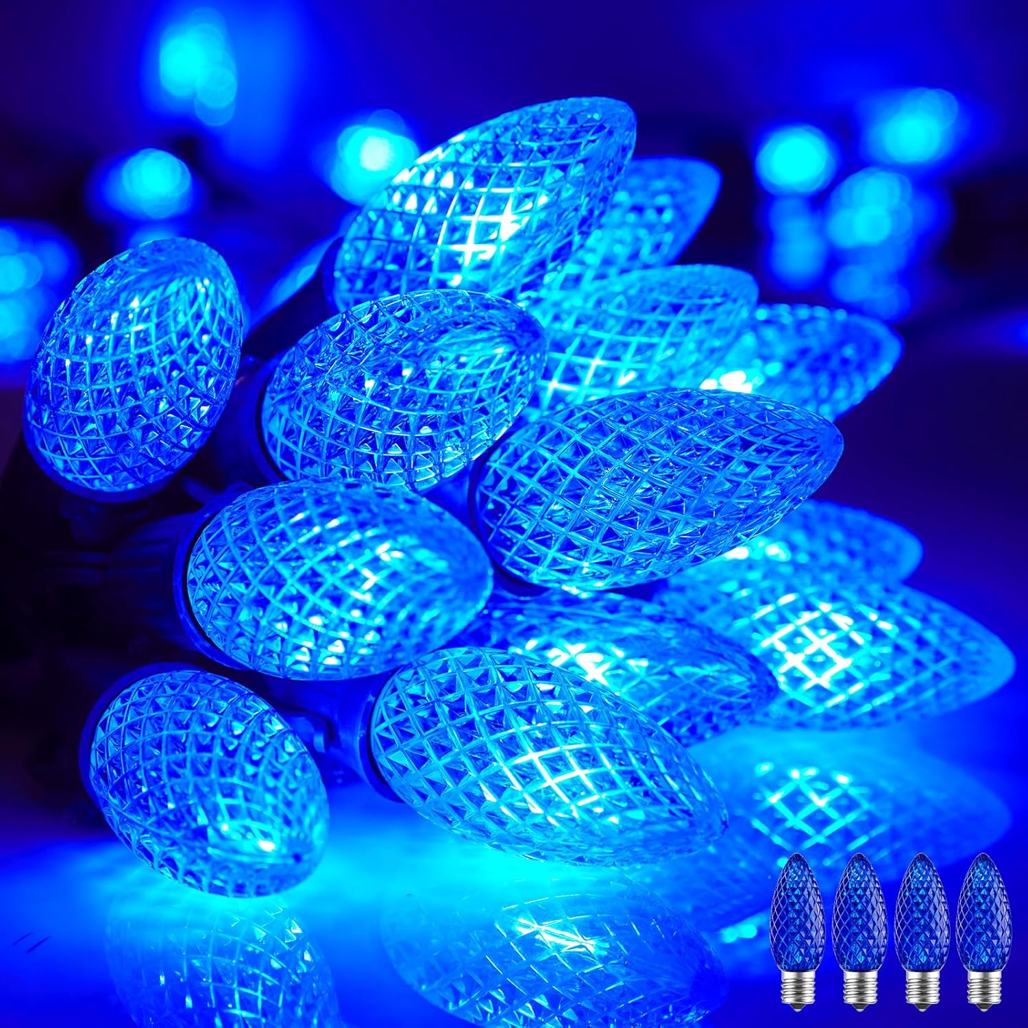 • UL Certified more safe: The C9 outdoor Christmas lights UL certified safety features to minimize shock and fire risk (a spare fuse and two spare bulbs are included). fantastic for bistro, bar, pub, coffee shop and mall Christmas decoration