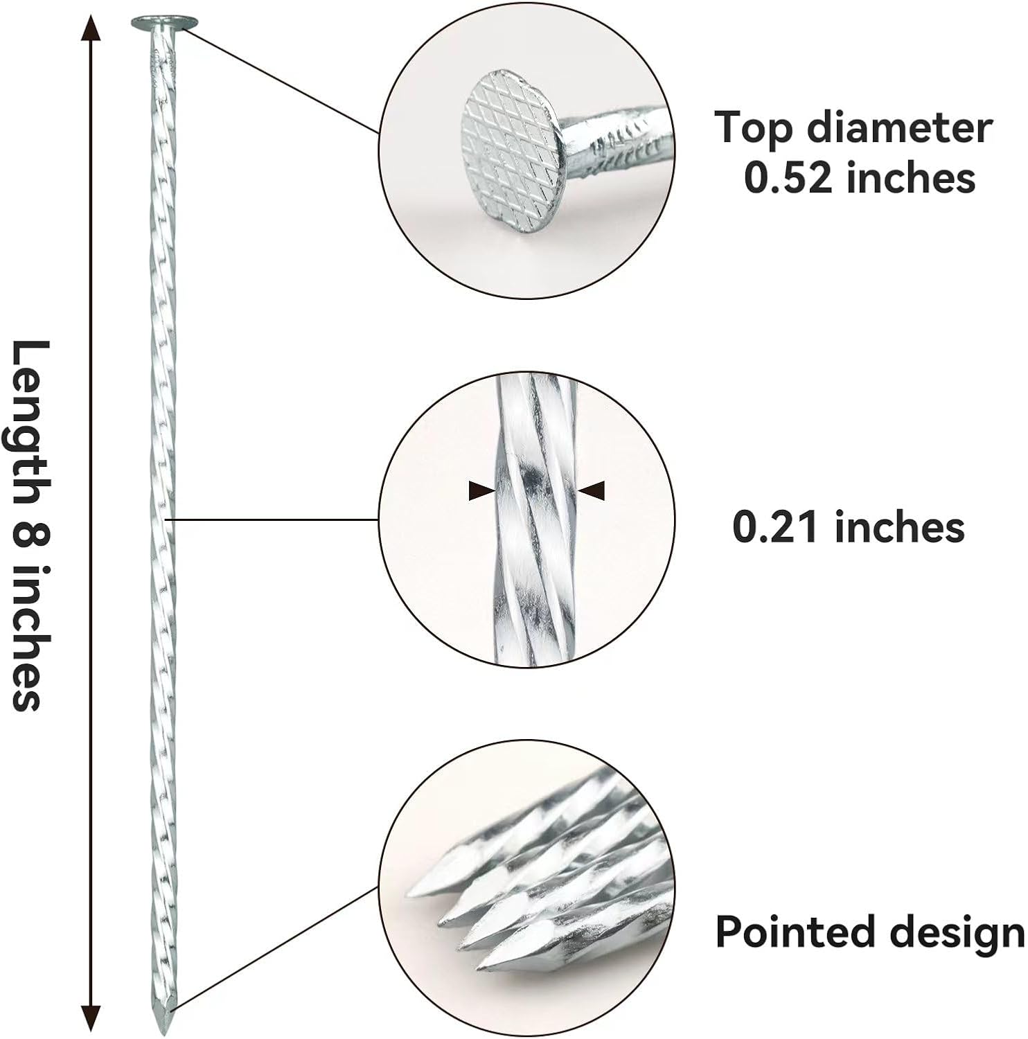 8" Heavy Duty Spiral Landscape Spikes - Solid Galvanized Metal Garden Stakes for Fixing Paver Edging, Weed Barriers, Artificial Turf, Tent and More (200 Pack)