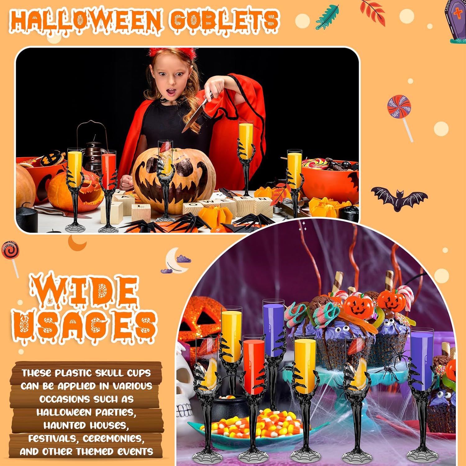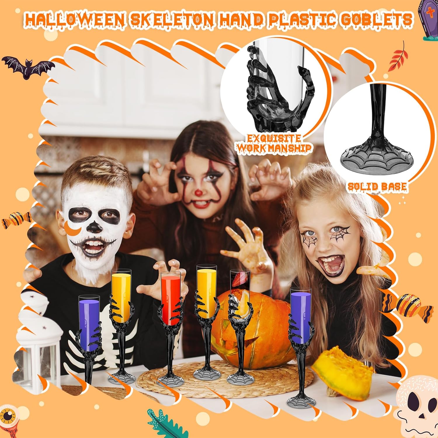 Bokon 48 Pcs Halloween Champagne Flutes Bulk Plastic Stemware Halloween Skeleton Hand Plastic Goblets Creepy Champagne Flute for Party Decoration(Black)