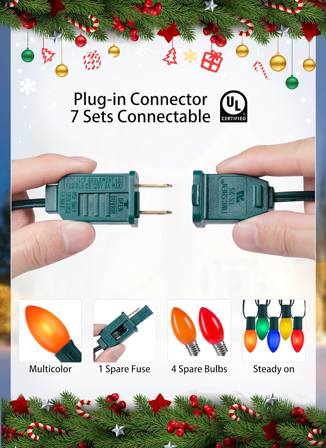 • Special Feature : ‎‎‎UL Certified LED C9 String Lights, Waterproof, Connectable, Christmas Tree Decorations