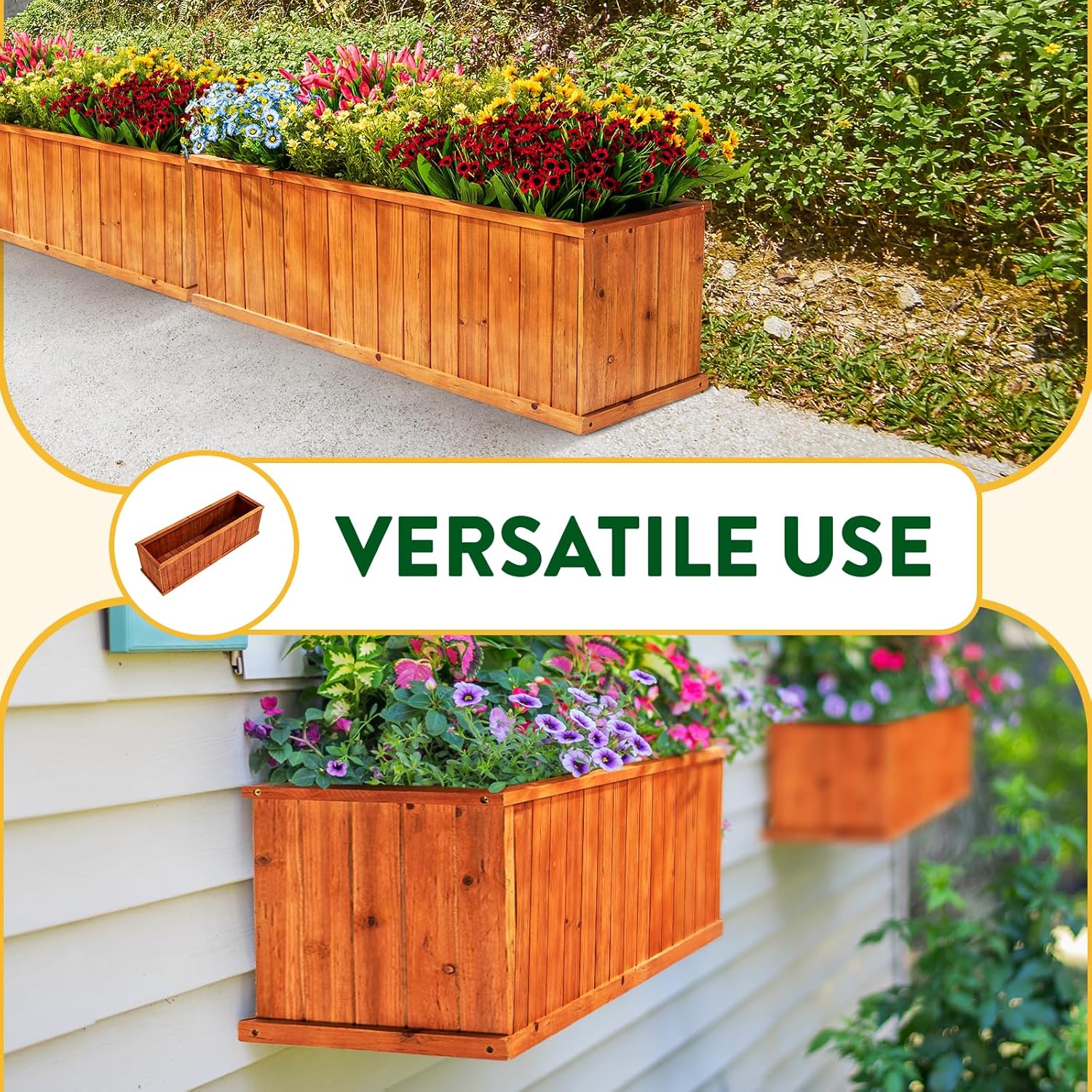 • VERSATILE USE: Our wood plant box outdoor can be used as a planter box as well as a window box, adding a touch of timeless elegance to any balcony, garden, or backyard