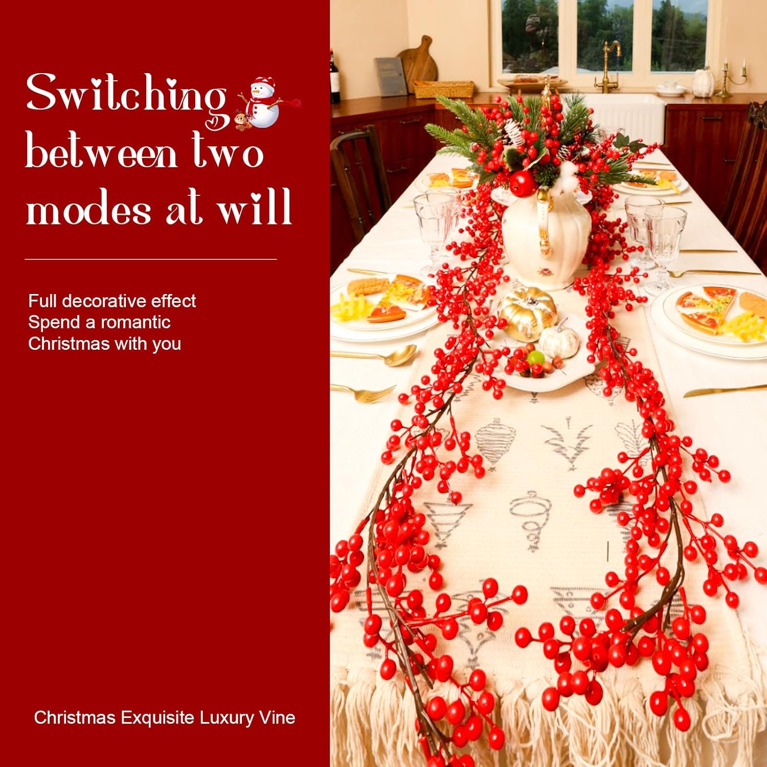 • Christmas Red Berry Garland: This 8.9 foot red berry garland with bendable branches is the perfect decorative indoor table, fireplace, wall, window or mantle accessory during the Holiday Season.