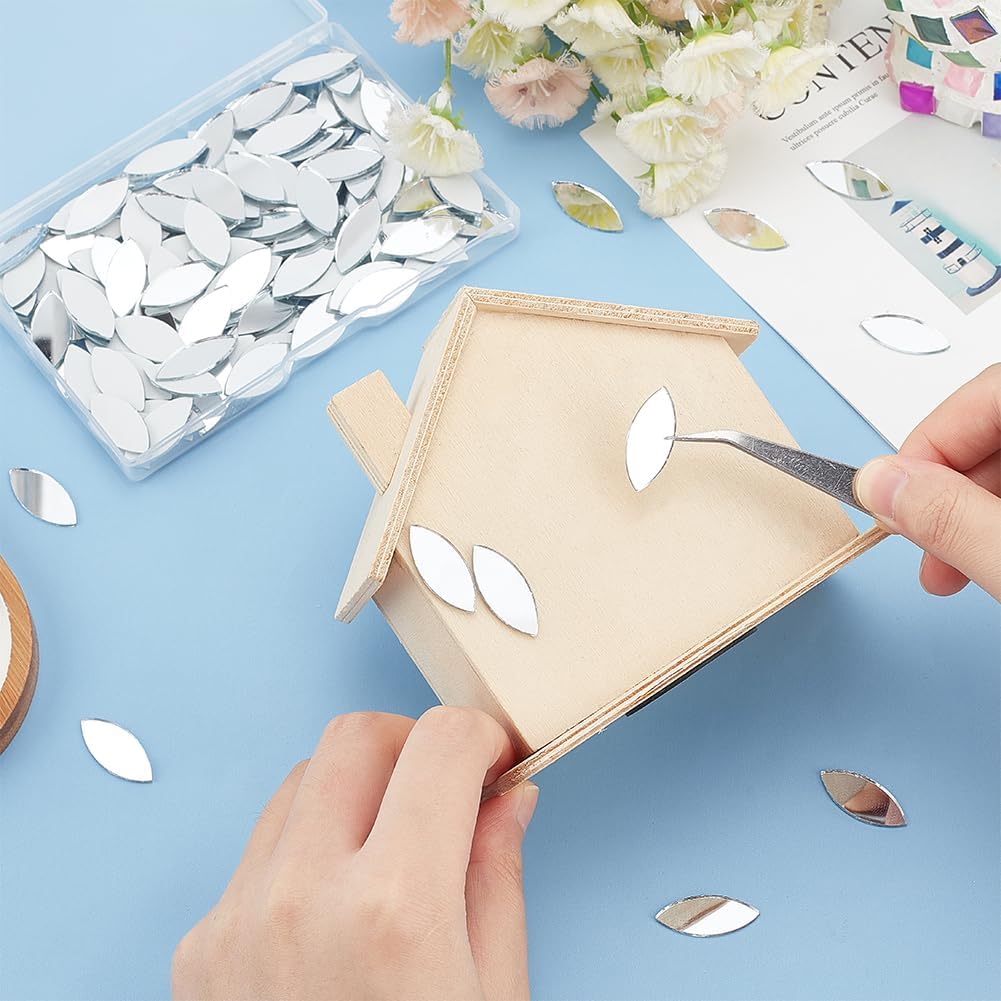 OLYCRAFT 150pcs Leaf Shape Craft Mirrors Mosaic Tiles 11x25mm Petal Mini Glass Mirror Tiles Leaf Cabochons Flower Leaves for DIY Crafts Art Wall Door Home Decorations